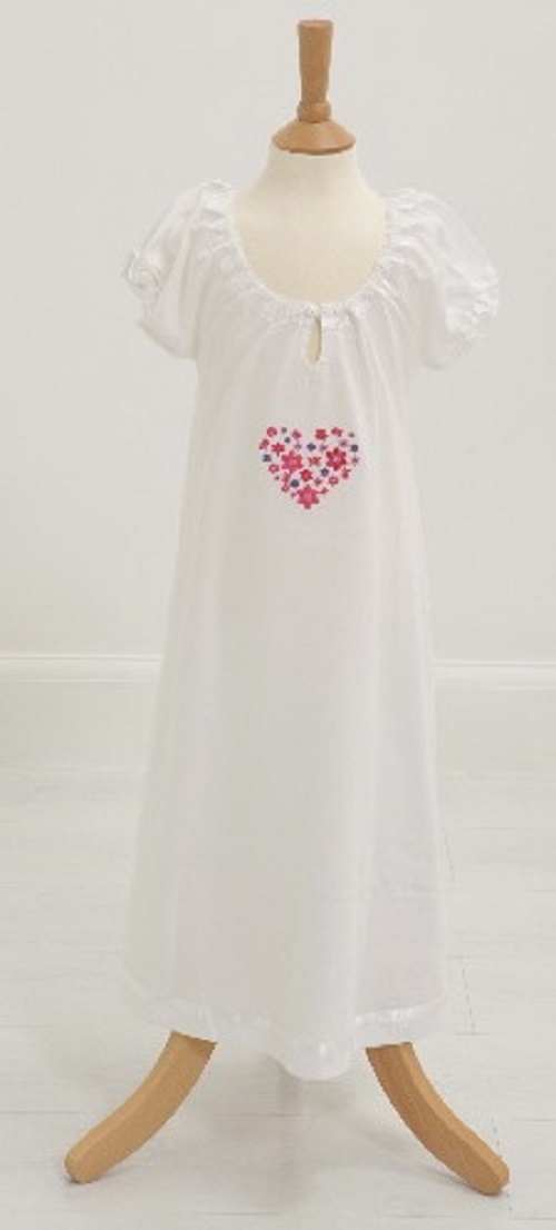 Lux Super Soft Cotton, Fire Retardant, Children Nighties in four designs. Embroidered Heart-222units, All over printed Flowers and Butterflies-25units, Embroidered Strawberry-153units and All Over printed Hearts and Trees-117units. Sizes from Infant, 2-3Y, 3-4Y, 5-6Y, 7-8Y, 9-10Y.