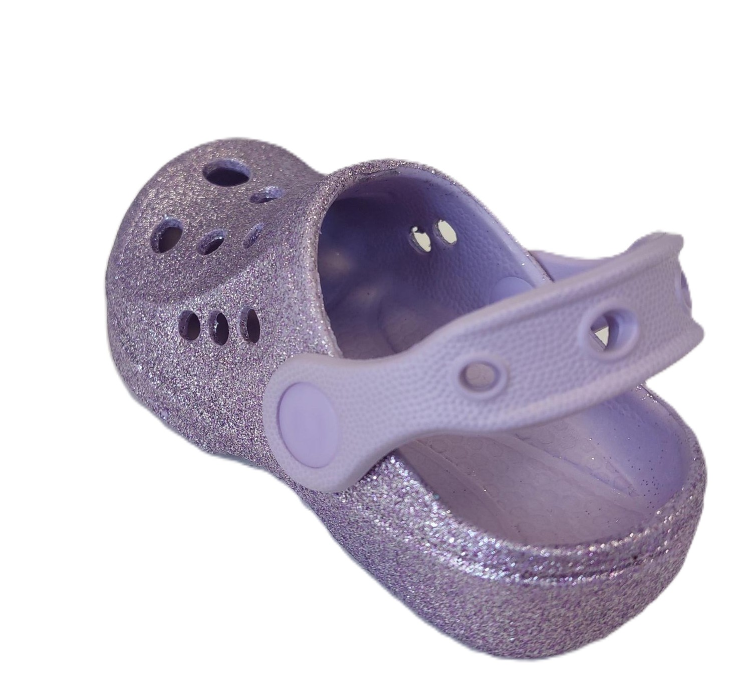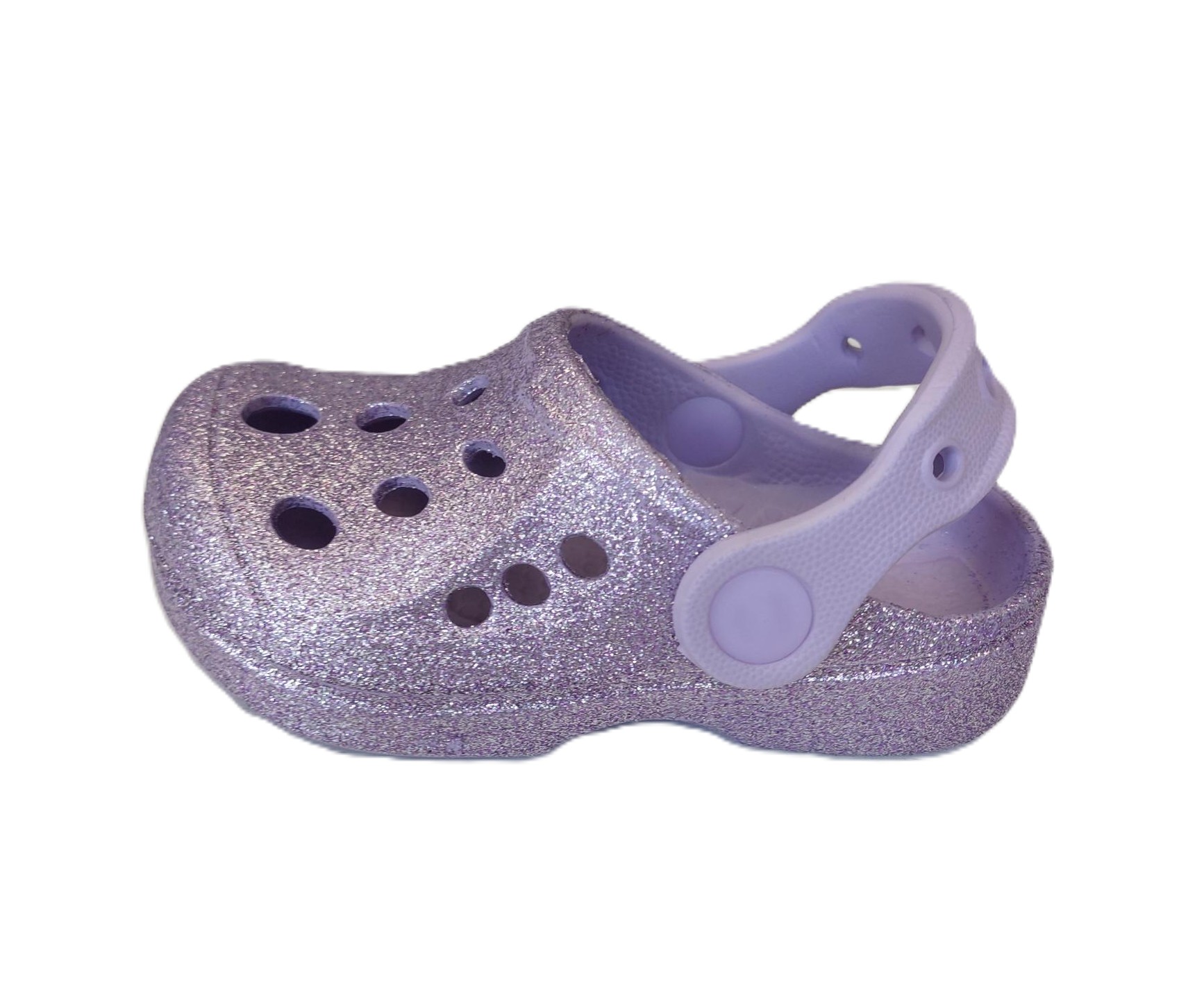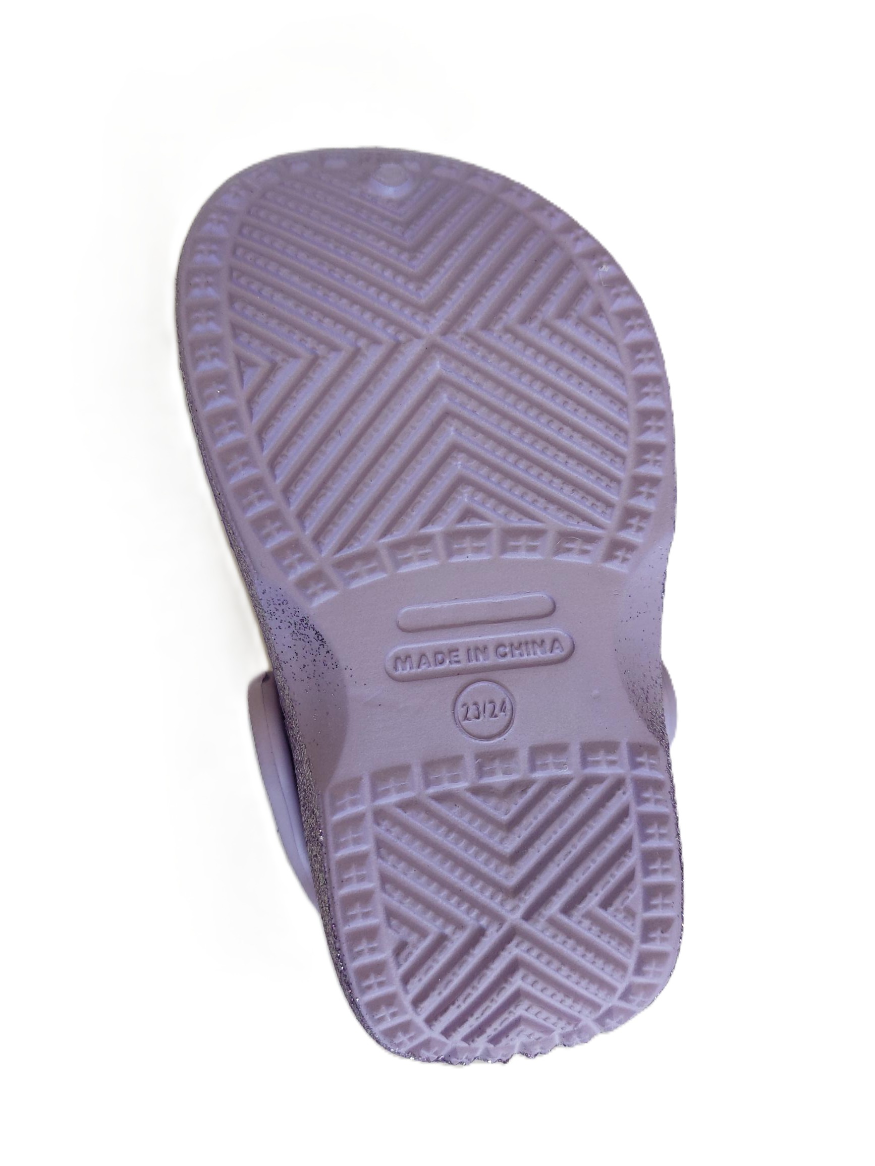 CHILDREN'S CLOGS - LILAC GLITTER, 5 SIZES, 50 UNITS PER JOB LOT