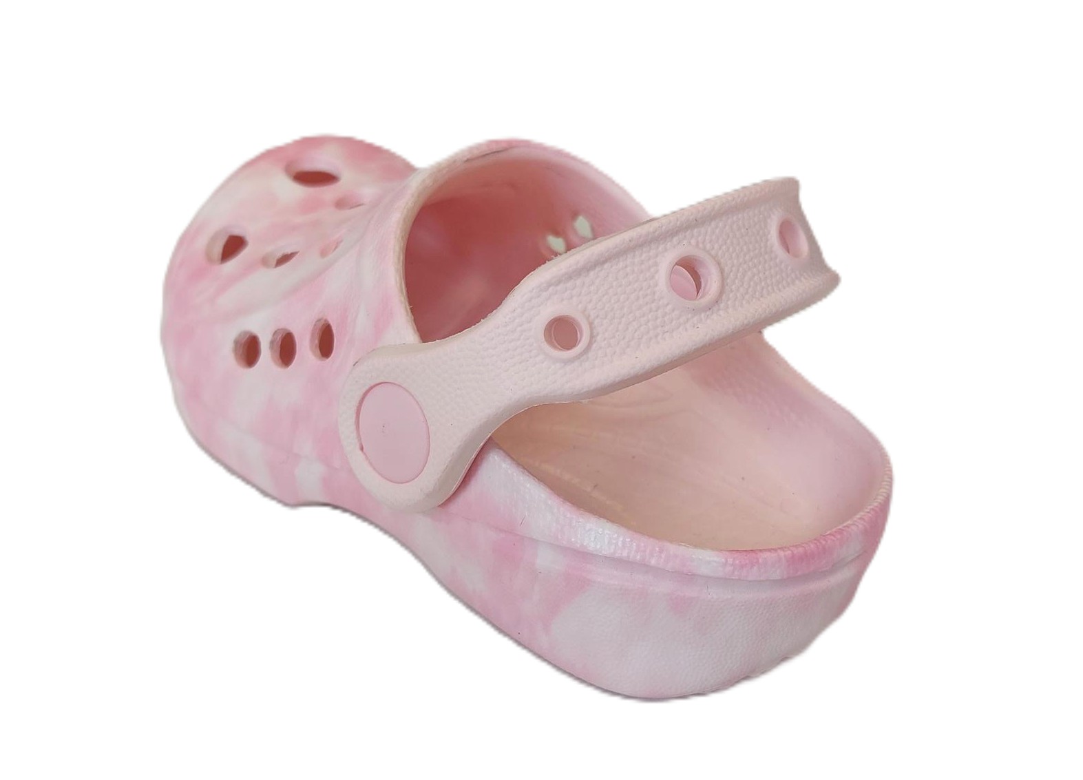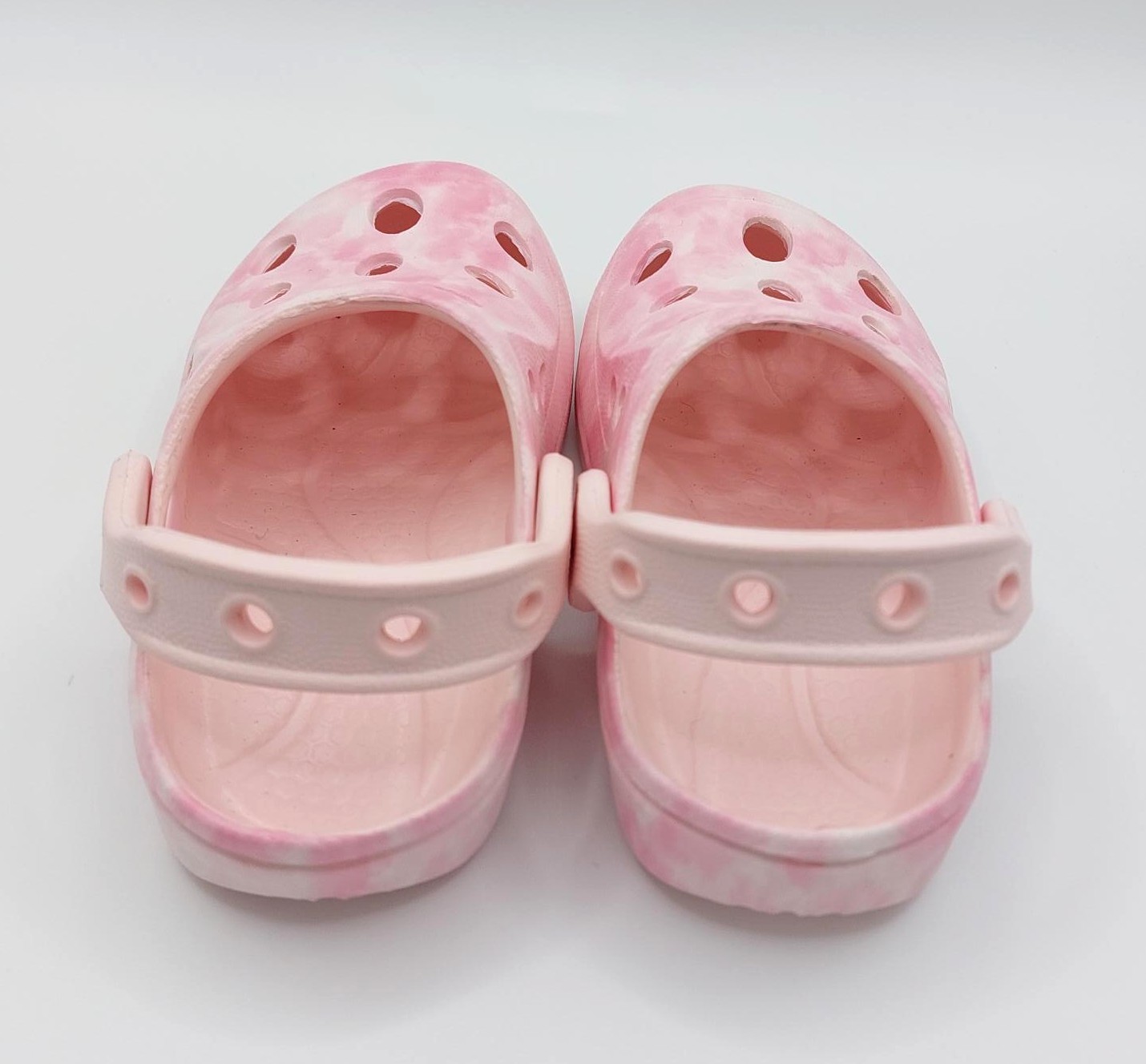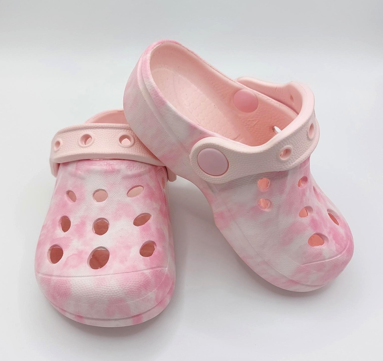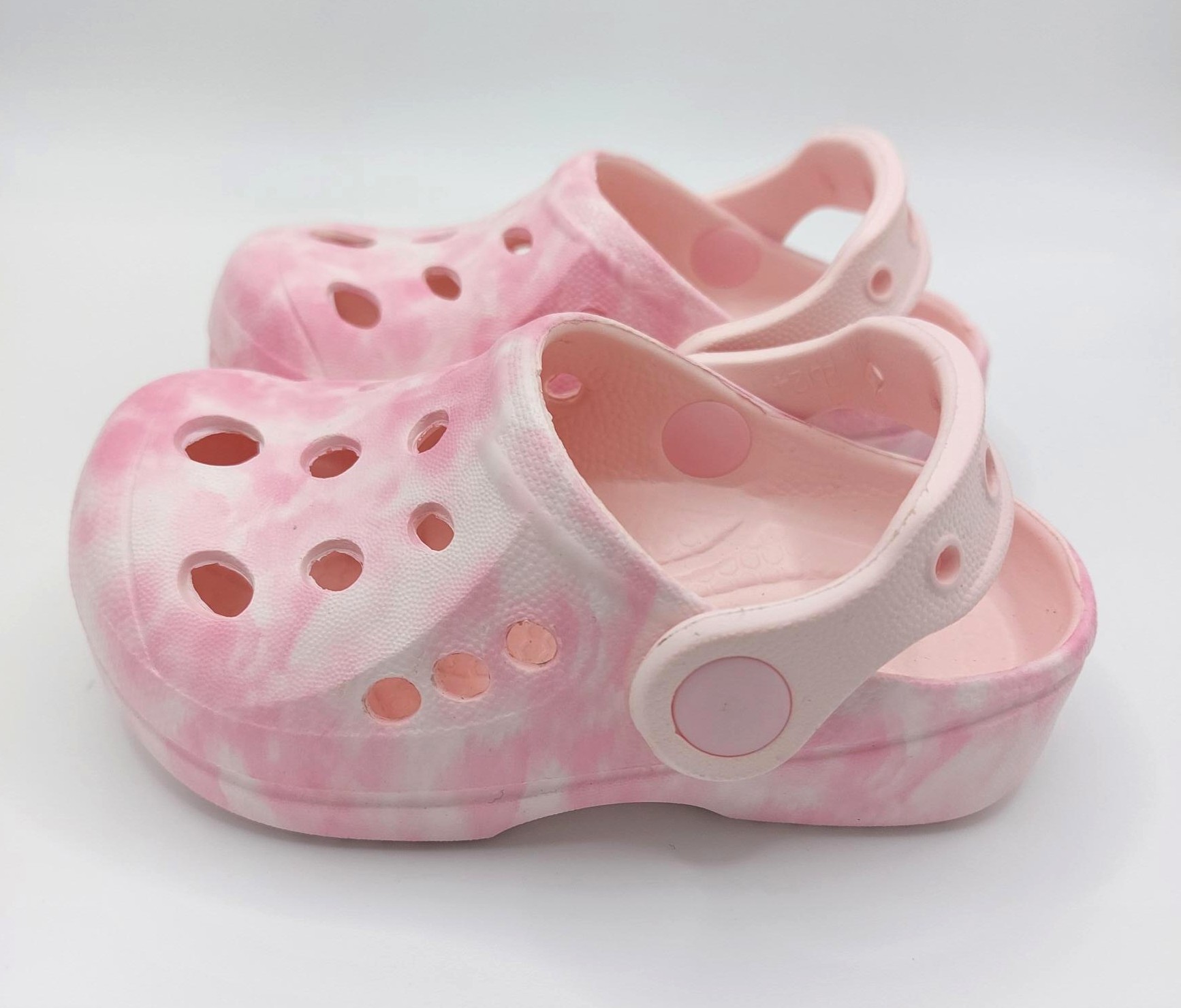 Children's pink tie dye clogs.