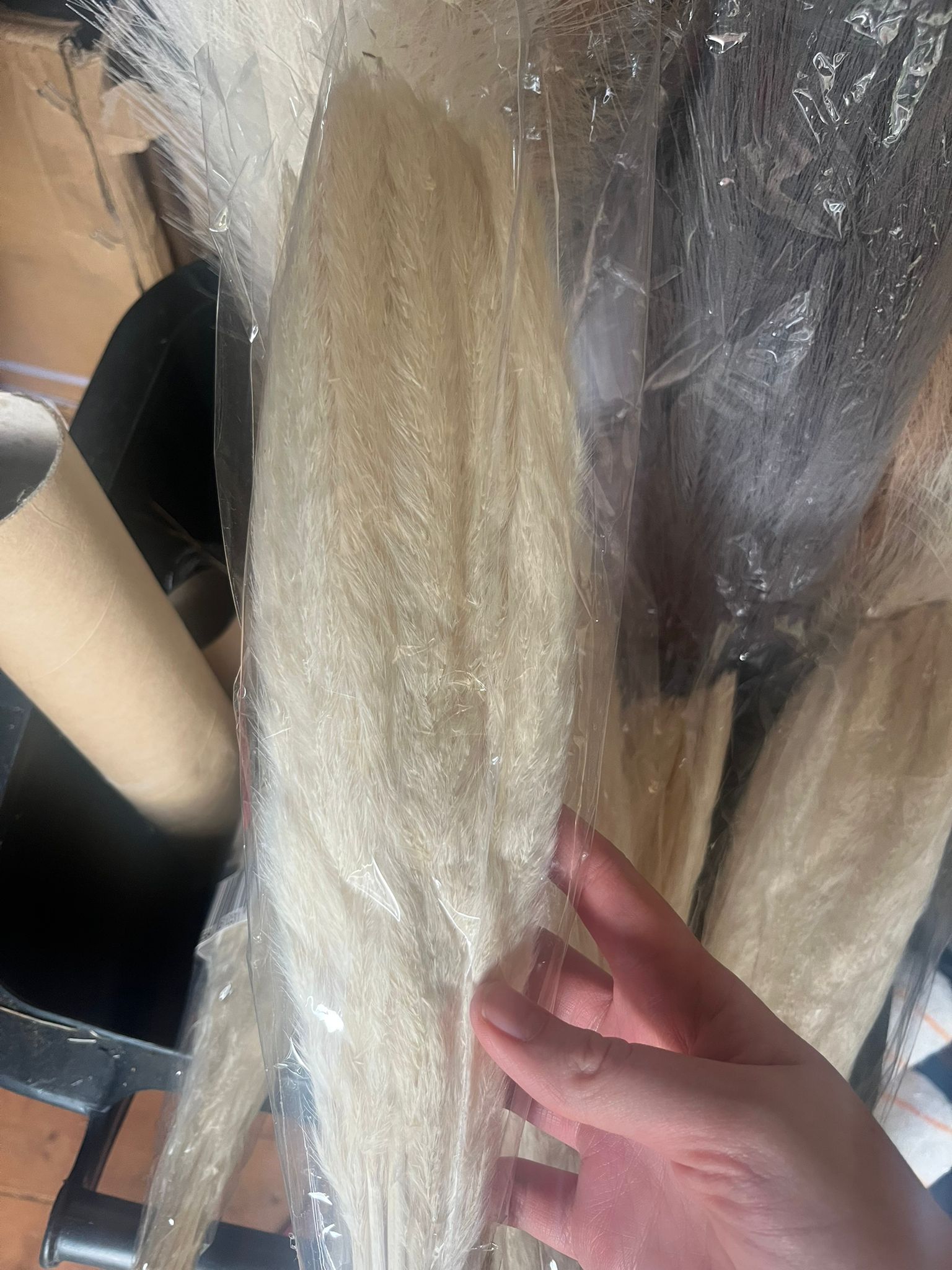 Brand new sealed pampas grass - off white - clearance stock for client with overstock all great condition for a floral business with over 50% off selling for £6 each pack go for over £15 on the market.
