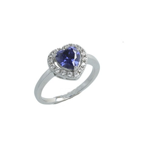 Heart Imitation Rhodium Plated & Blue CZ rings sizes P & R. Joblot of 82