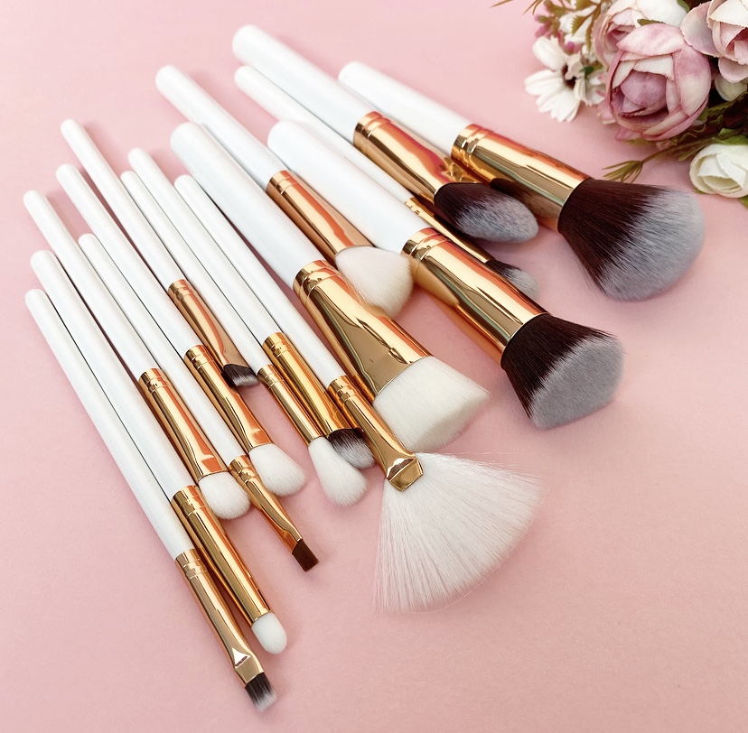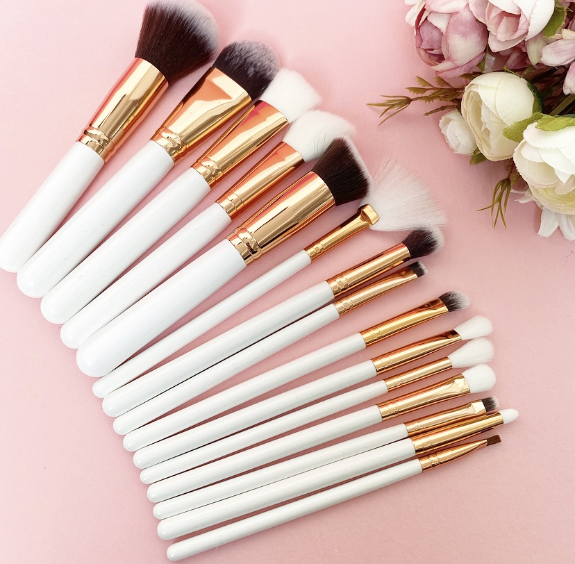 White & Gold Make Up Brush Set (15pc brushes per set)