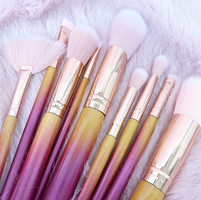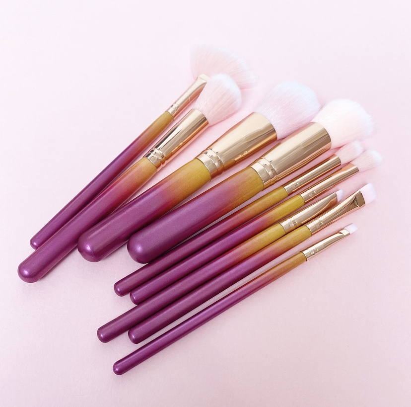 Joblot 175pc Ombre Handle Makeup Brush Set with Pink Pouch (9 brushes per set)
