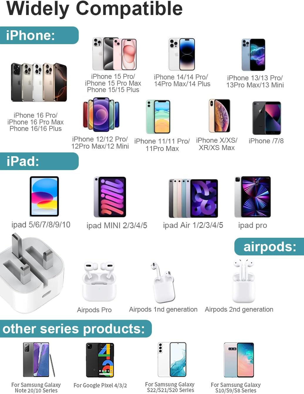 - Compatibility: Suitable for all iPhone and iPad models that support USB-C fast charging. Works with any USB-C to Lightning or USB-C to USB-C cable.