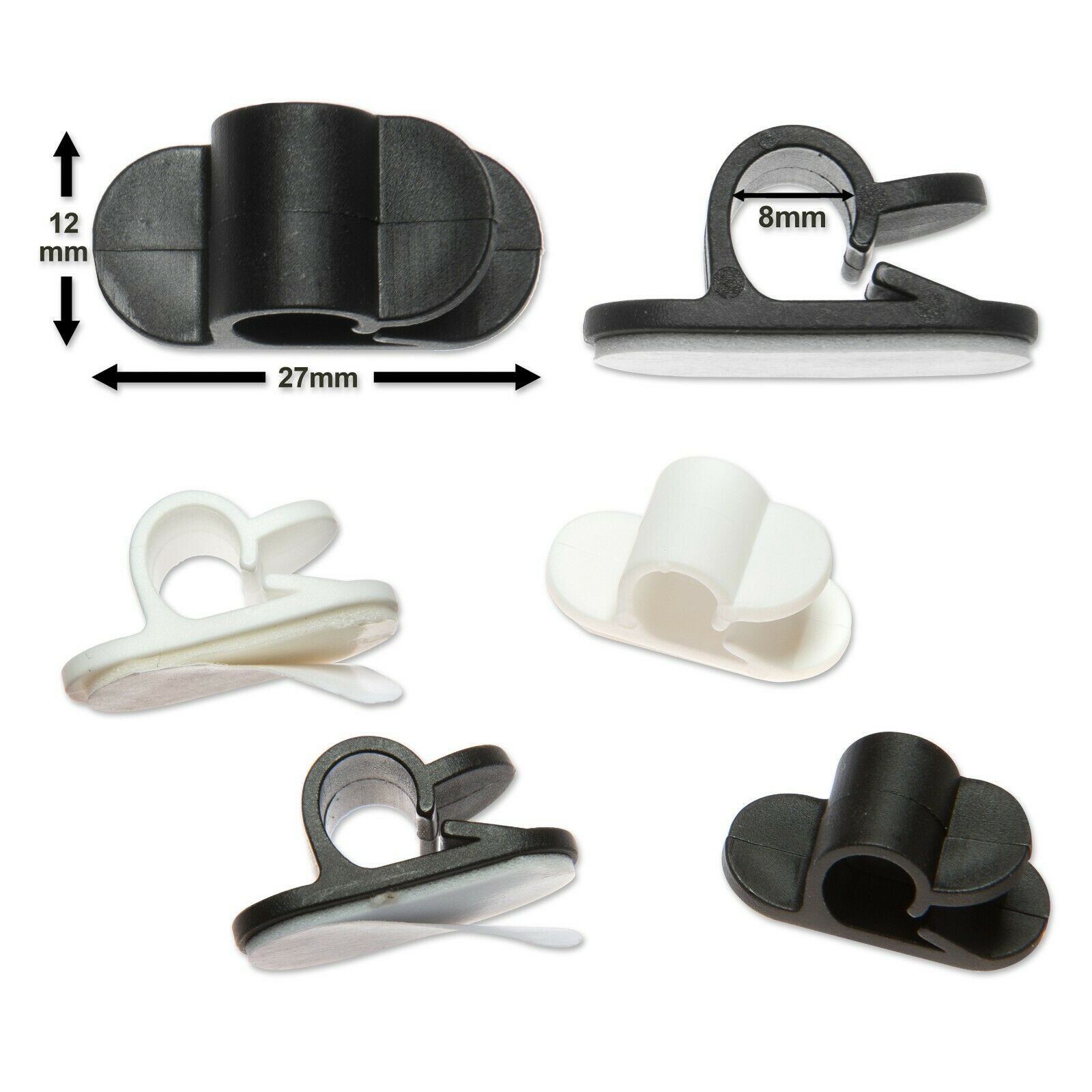 Joblot of 100 packs of 60 Self-Adhesive Cable Hooks, Cable Mounts Peel-and-Place, Cable Holders from Sockit (Assorted 30 White and 30 Black): on Size