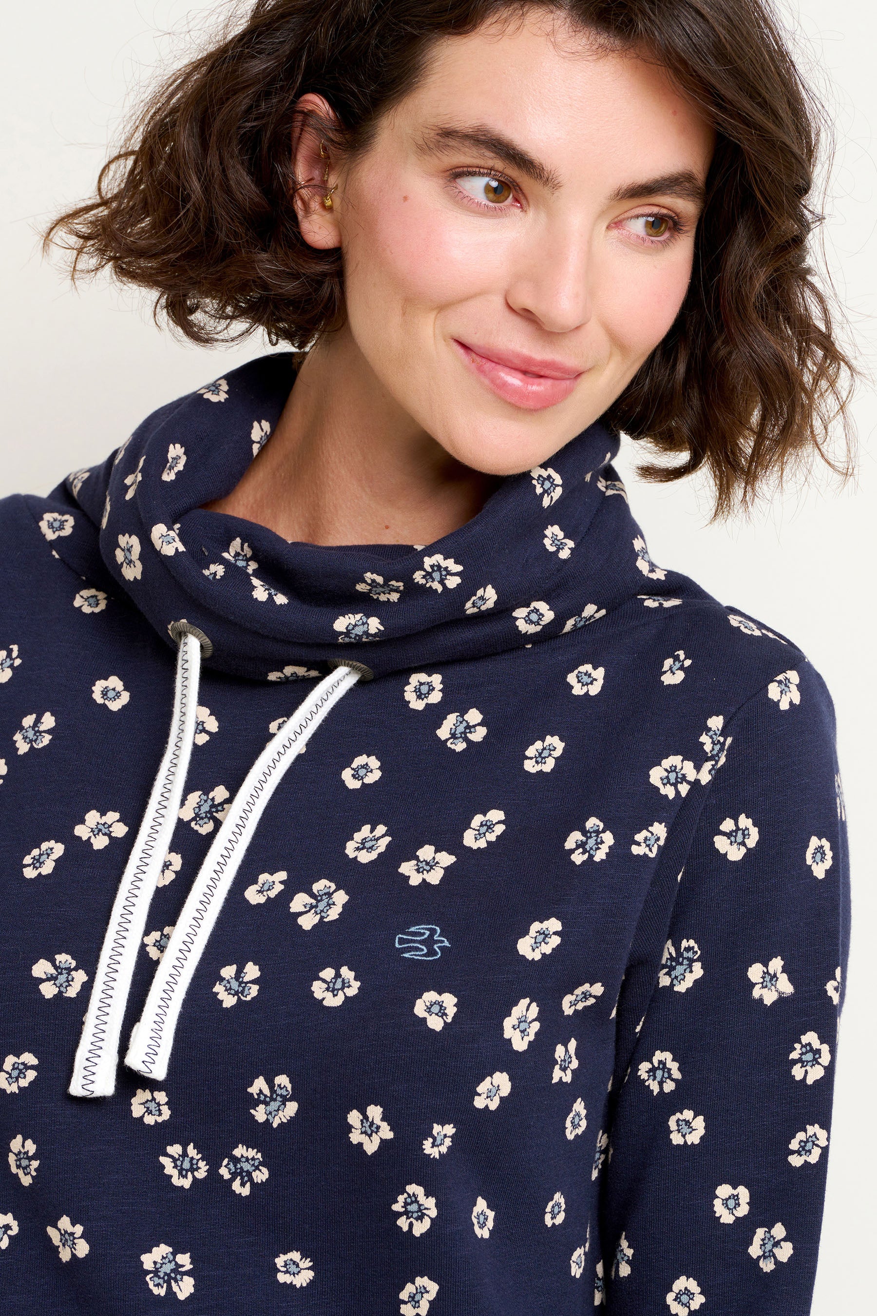 Become queen of casualwear in this bold print hoodie. The cross style hood is one of Brakeburn's most popular designs, and they've given it a bold new look for the year in Brakeburn's very own Polka Flora Cowl Neck Sweatshirt