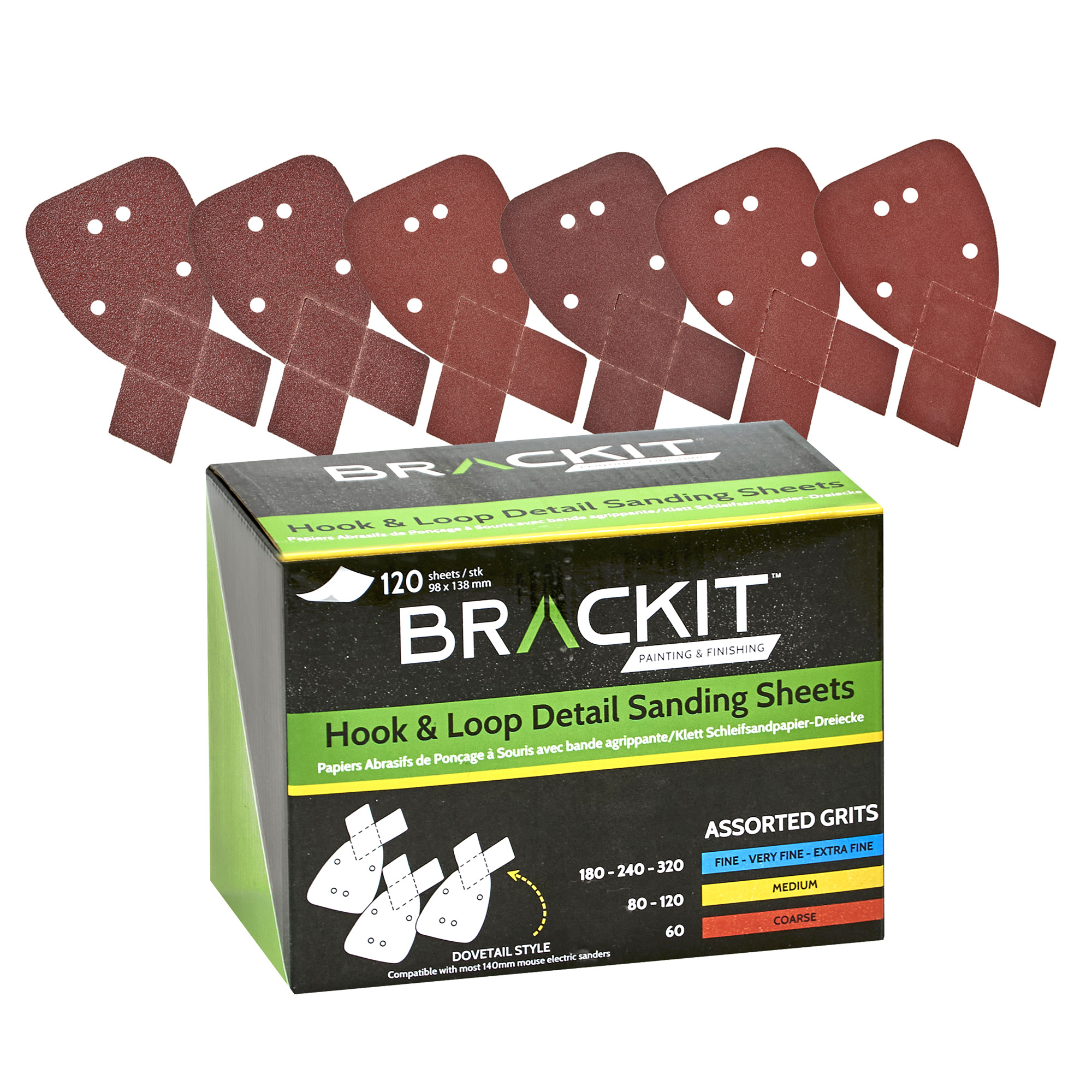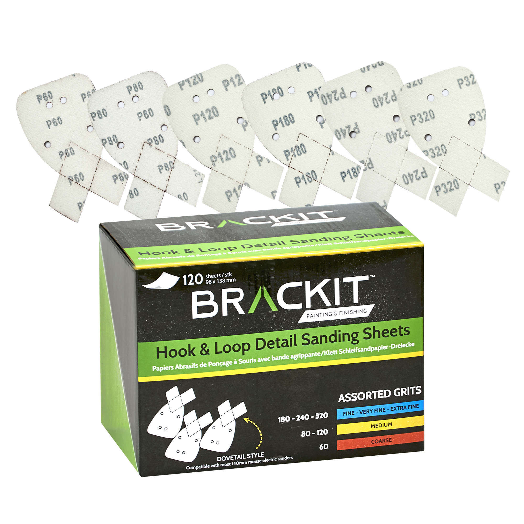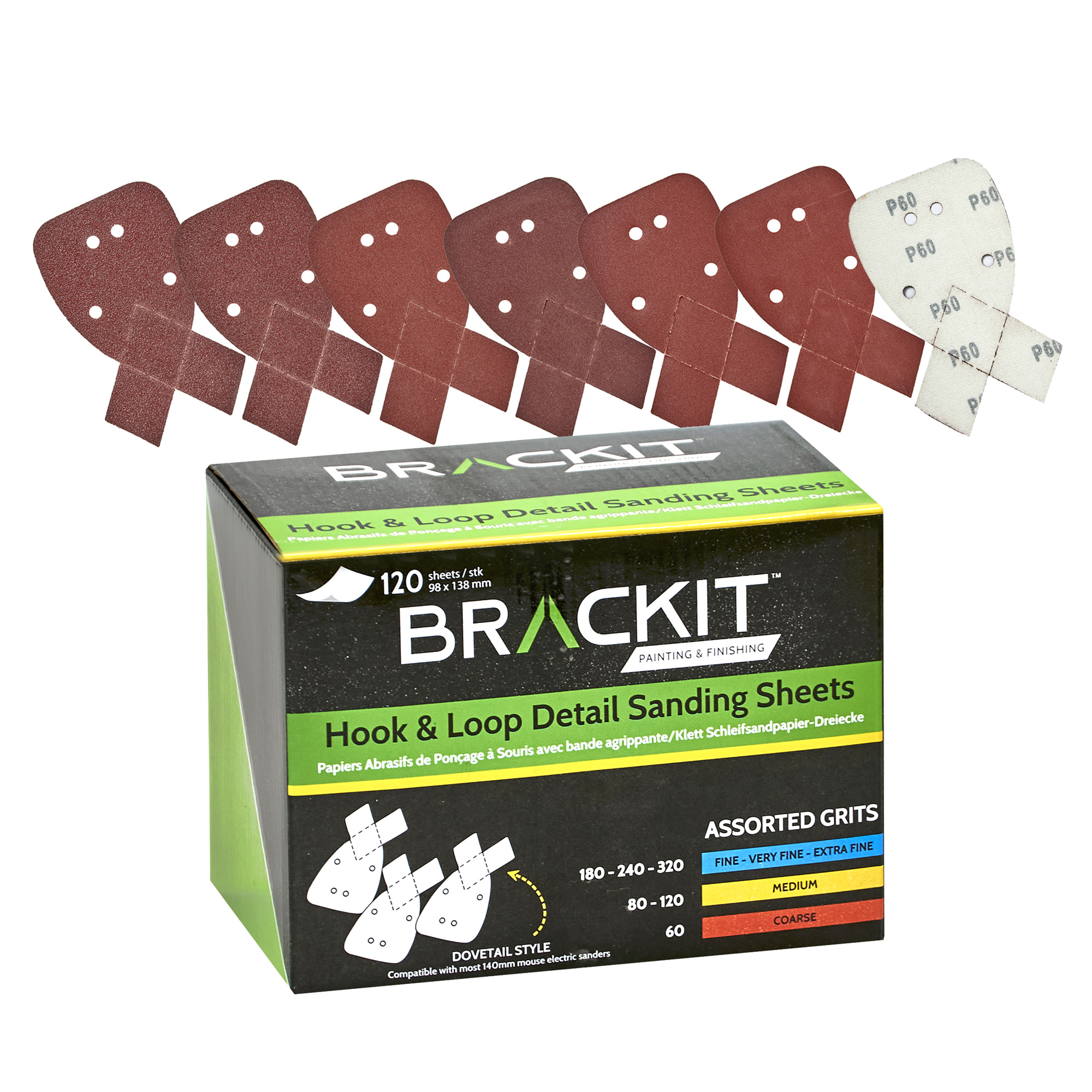 JOBLOT OF 9 PACKS OF Brackit Mouse Sandpaper Pads with Hook & Loop - 120 Bulk Pack Mixed Grits 60, 80, 120, 180, 240, 320 – Fits in Detail Palm Sand