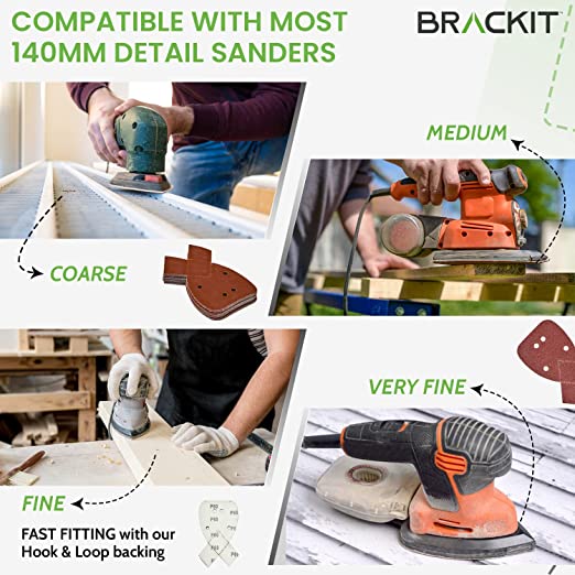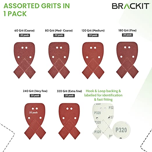 - Great Value: Our high strength sandpaper pad set includes 120 sheets in all different grit grades from coarse to fine including 60, 80, 120, 180, 240 and 320. 20 sheets of each grit are included in every pack. Can be used on multi-sanders. Suitable for 140mm mouse palm electric sander and detail sanders.