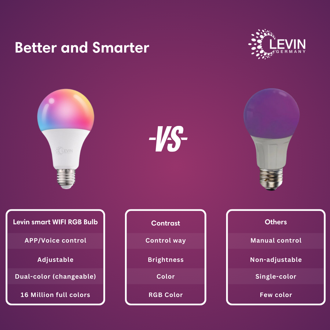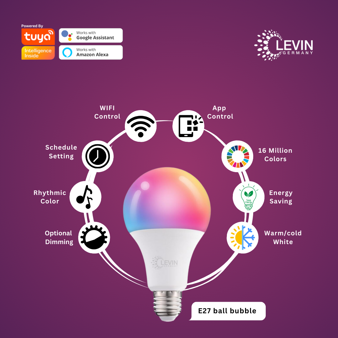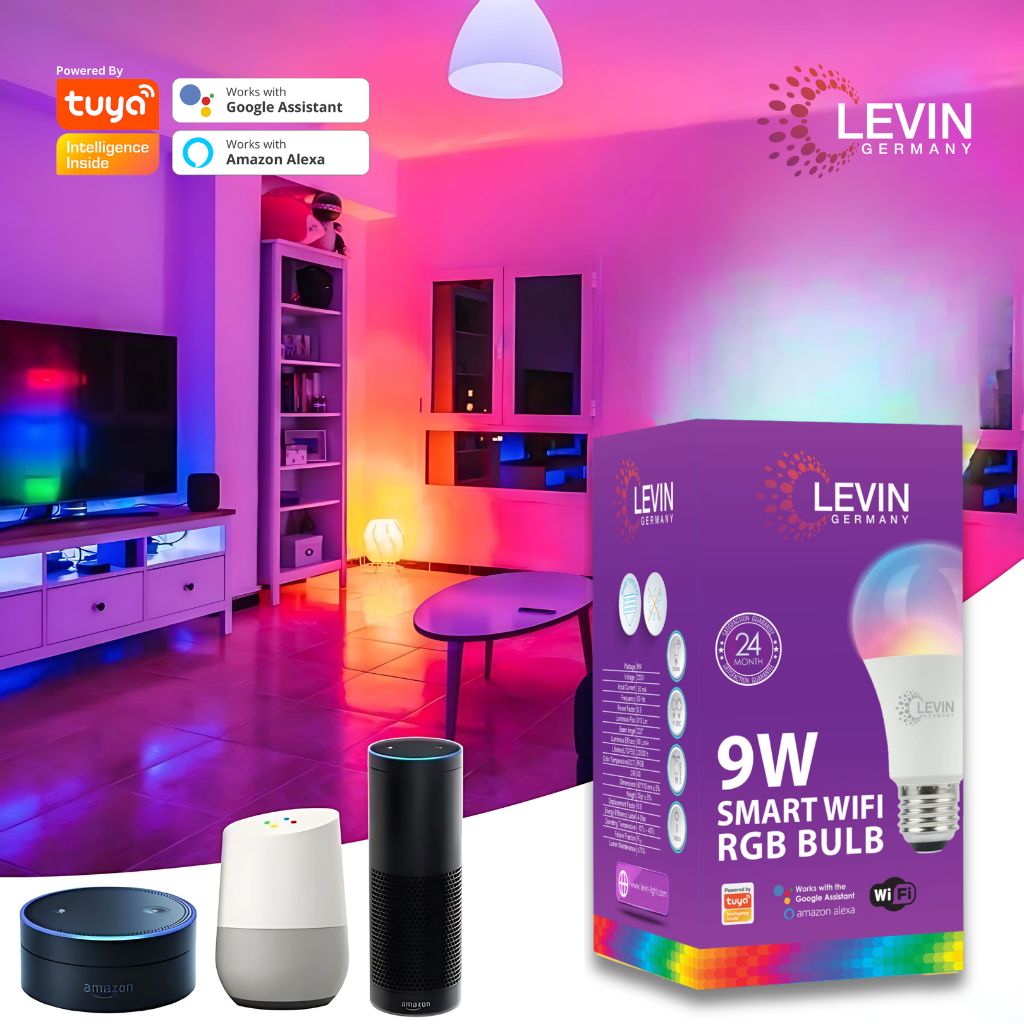 100 Pack – Levin Smart LED Bulb E27, 9W RGB Colour-Changing, Dimmable, Wi-Fi & Bluetooth, Works with Alexa/Google Home, 810 Lumens