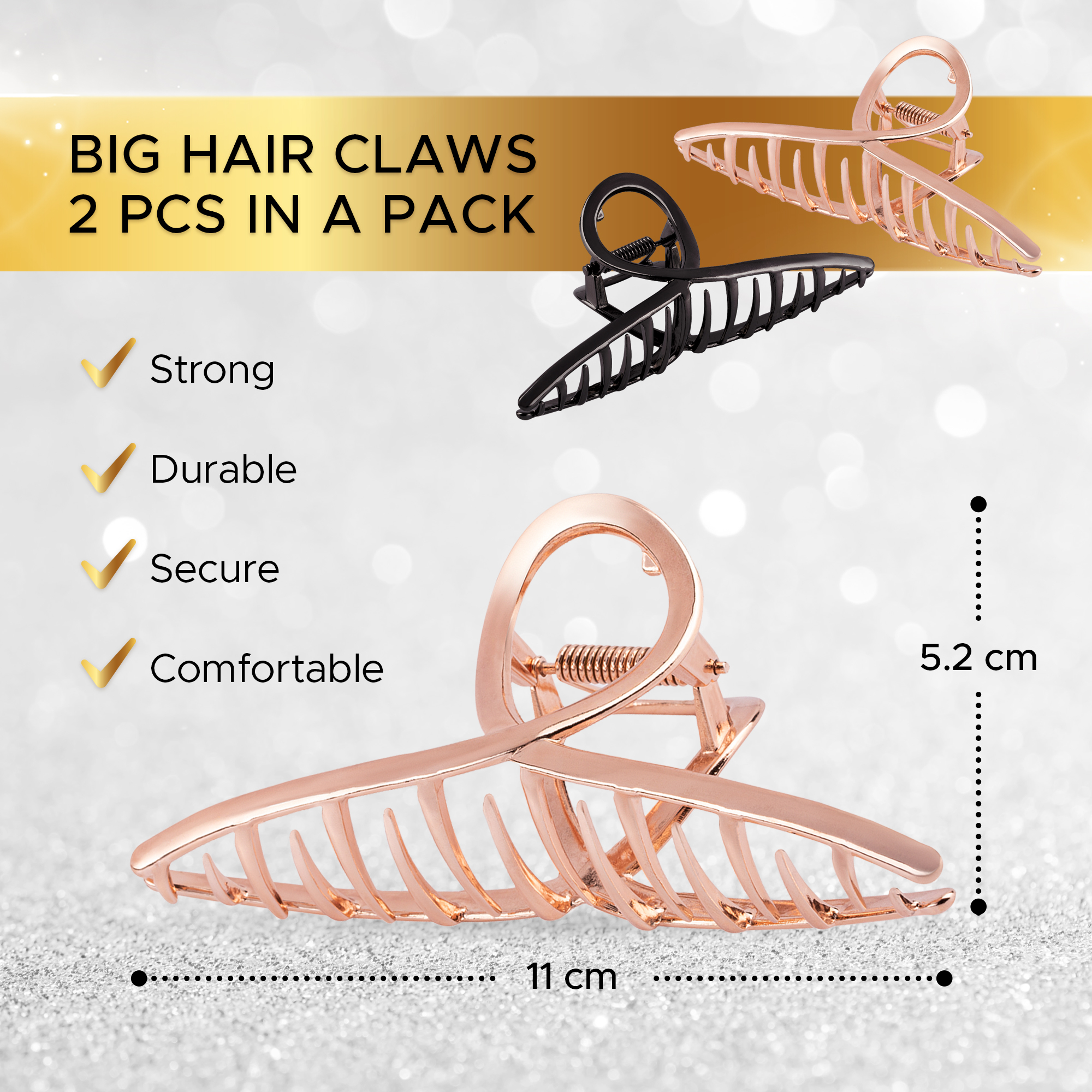 1. Secure, Stylish & Designed for Supreme Confidence - Transform every hairstyle with these premium and elegant large hair claw clips. They comfortably hold all hair types (thick, curly, thin, fine), all day long. Ergonomically designed claw clips for thick hair, are easy to use and provide all-day hold. For women and girls who need hair grips that look stylish and feel comfortable.