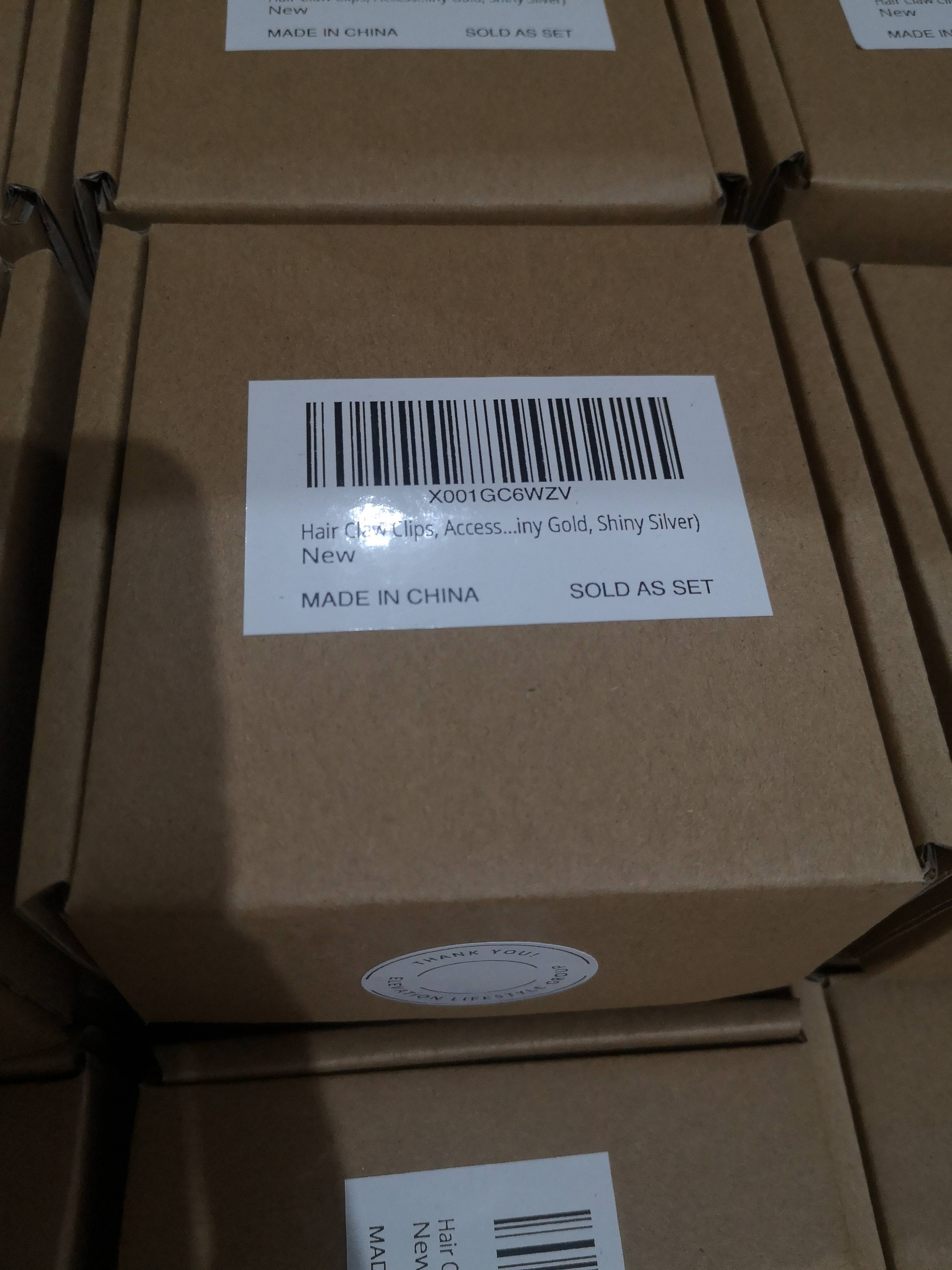 11. 150 items (150 cardboard boxes. Each box has 2 hair claw clips plastic wrapped individually) per job lot. 2 job lots available