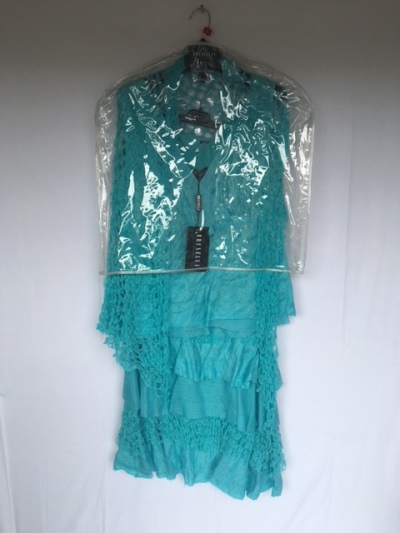 728 size 18 Aqua Top, Skirt & Lace Scarf -RRP £554