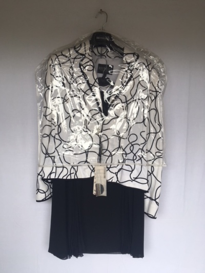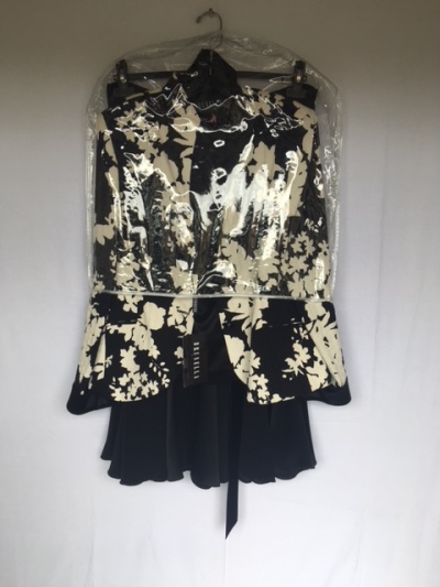735 size 12 Black Skirt, Black/White Pattern Top & Jacket -RRP £540