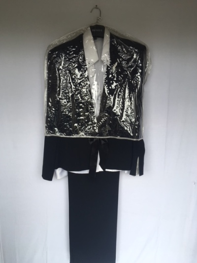 736 size 20 Black Trouser Suit, White Satin Shirt, Diamanté Belt -RRP £580