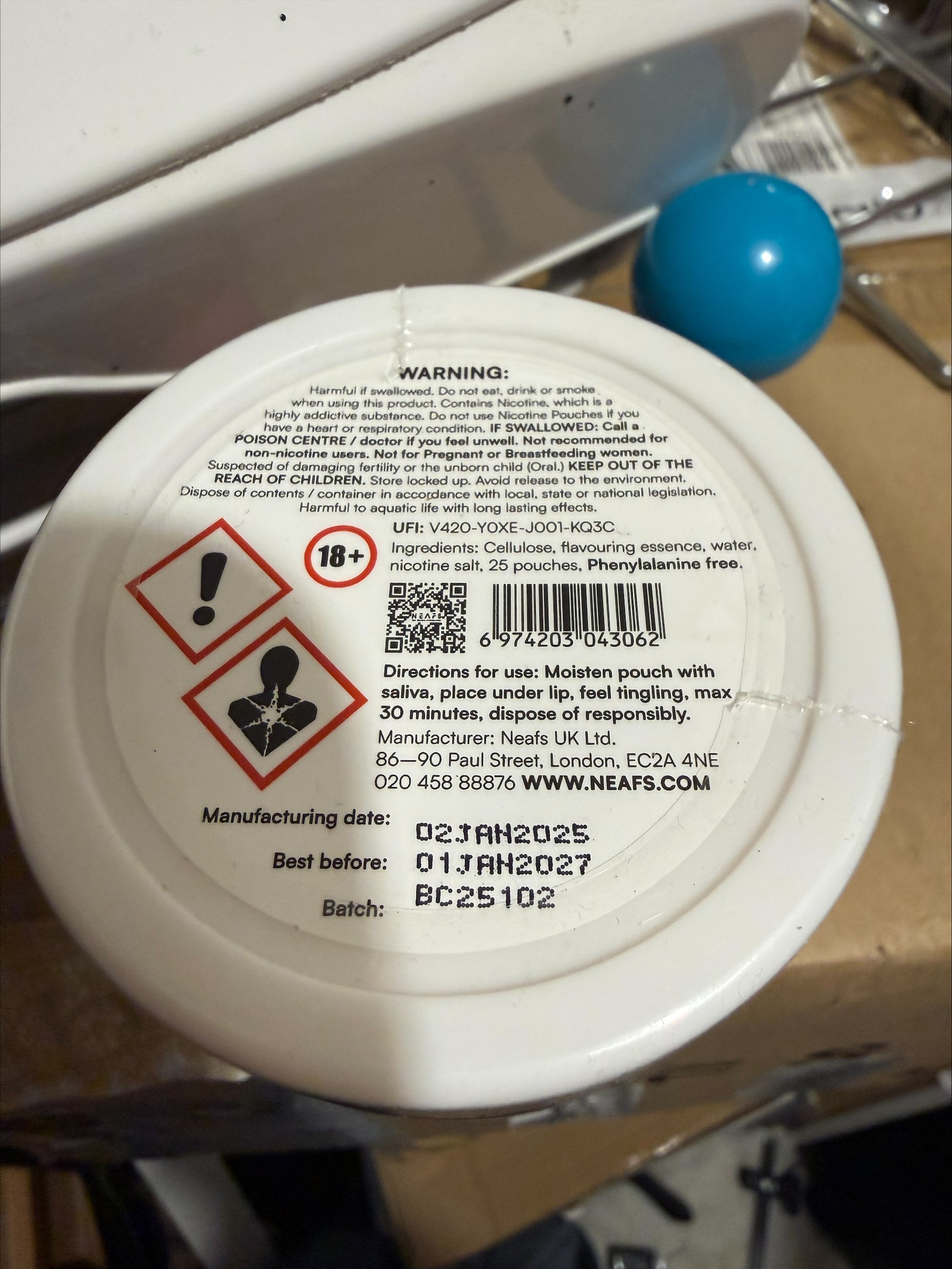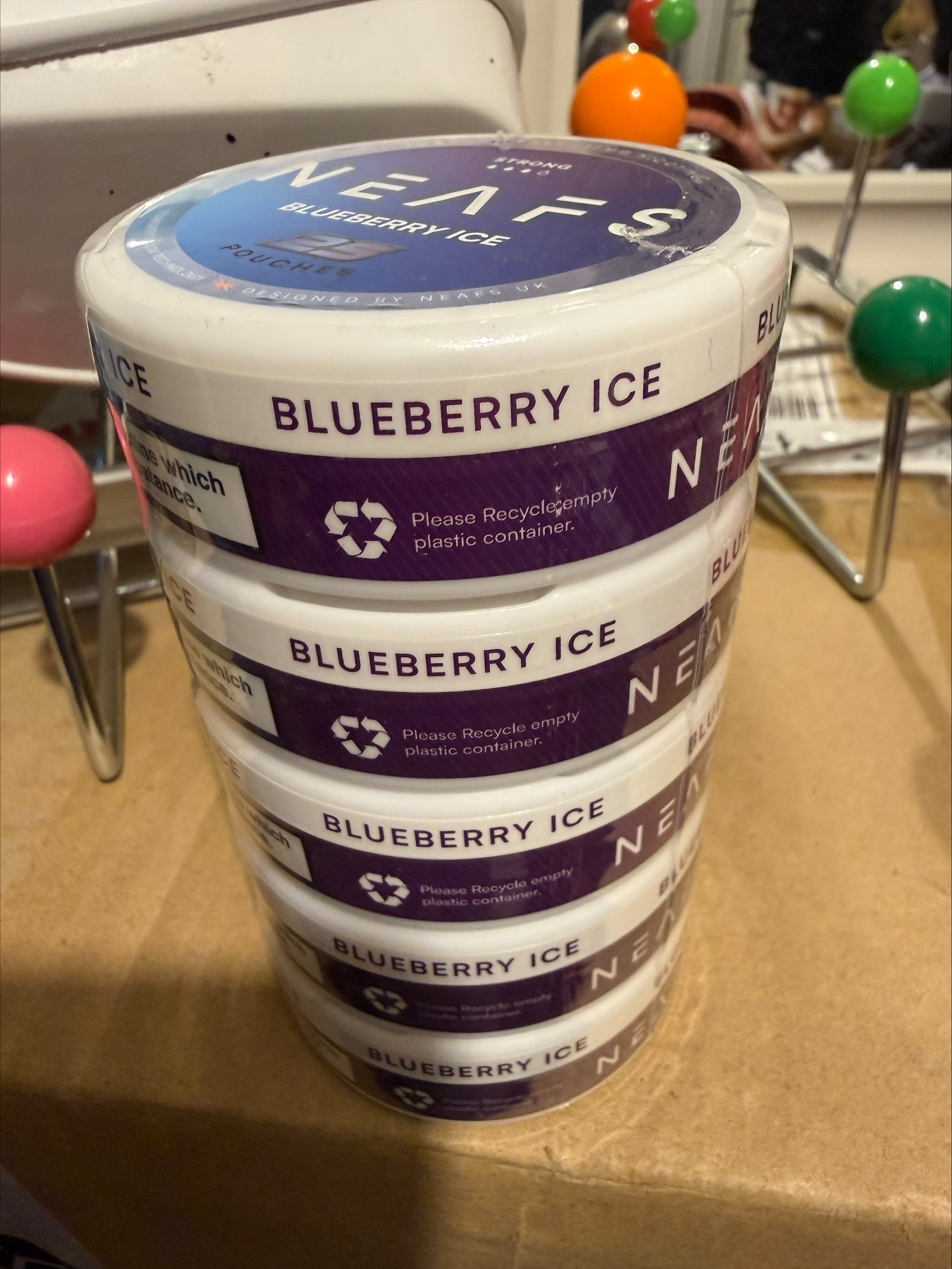 NEAFS Nicotine Pouches - Blueberry Regular (8mg) 250 x cans of 25 pouches (£6.49 RRP per can, £1,622.50 RRP for joblot