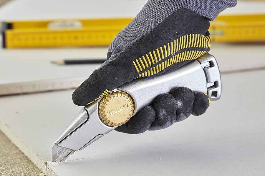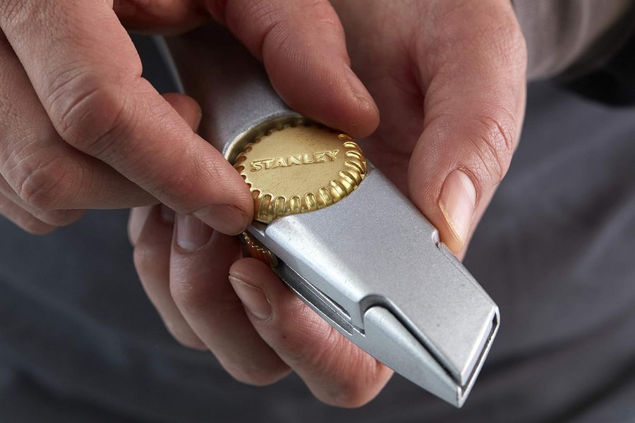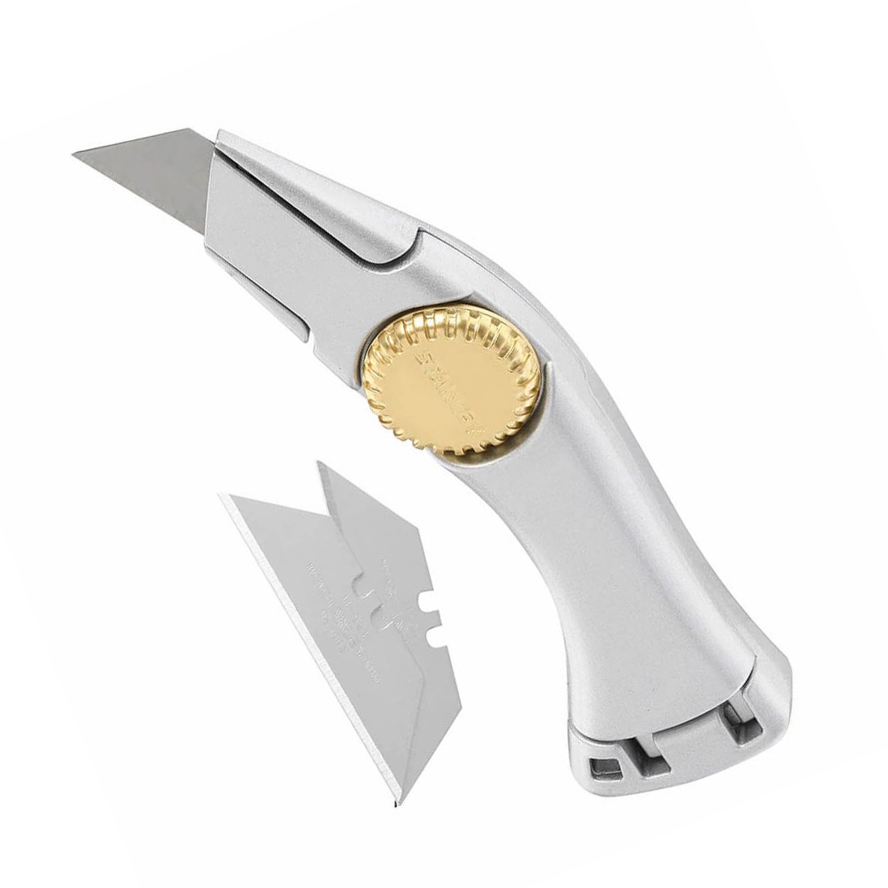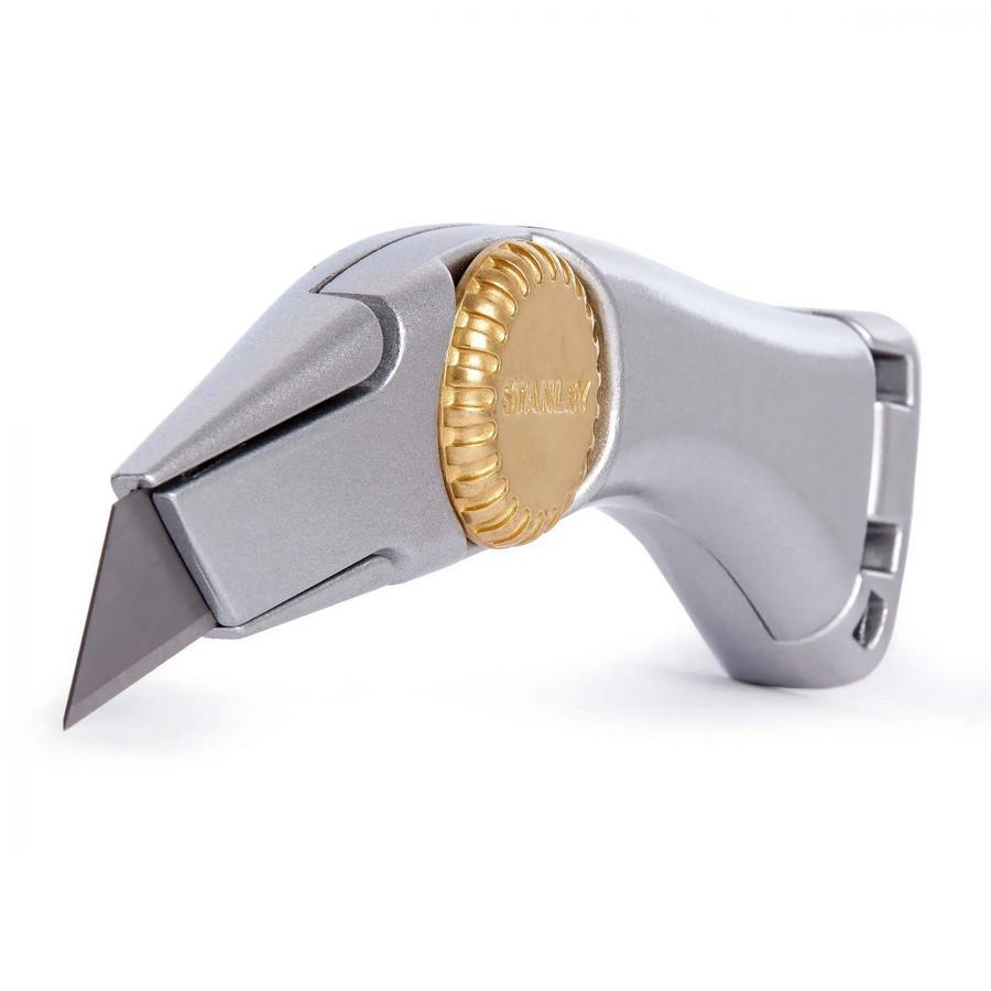 The Stanley Titan FB is an all-metal Fixed Blade Knife that comes with 3 Blades stored internally. The tool of choice for carpet fitters because of the sturdy brass and aluminium construction.