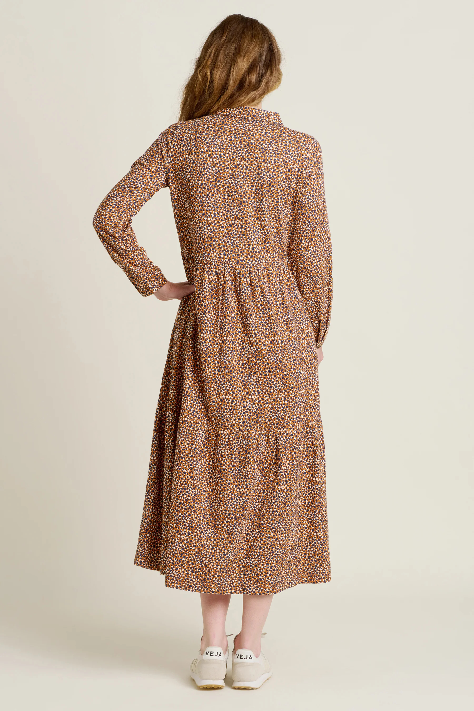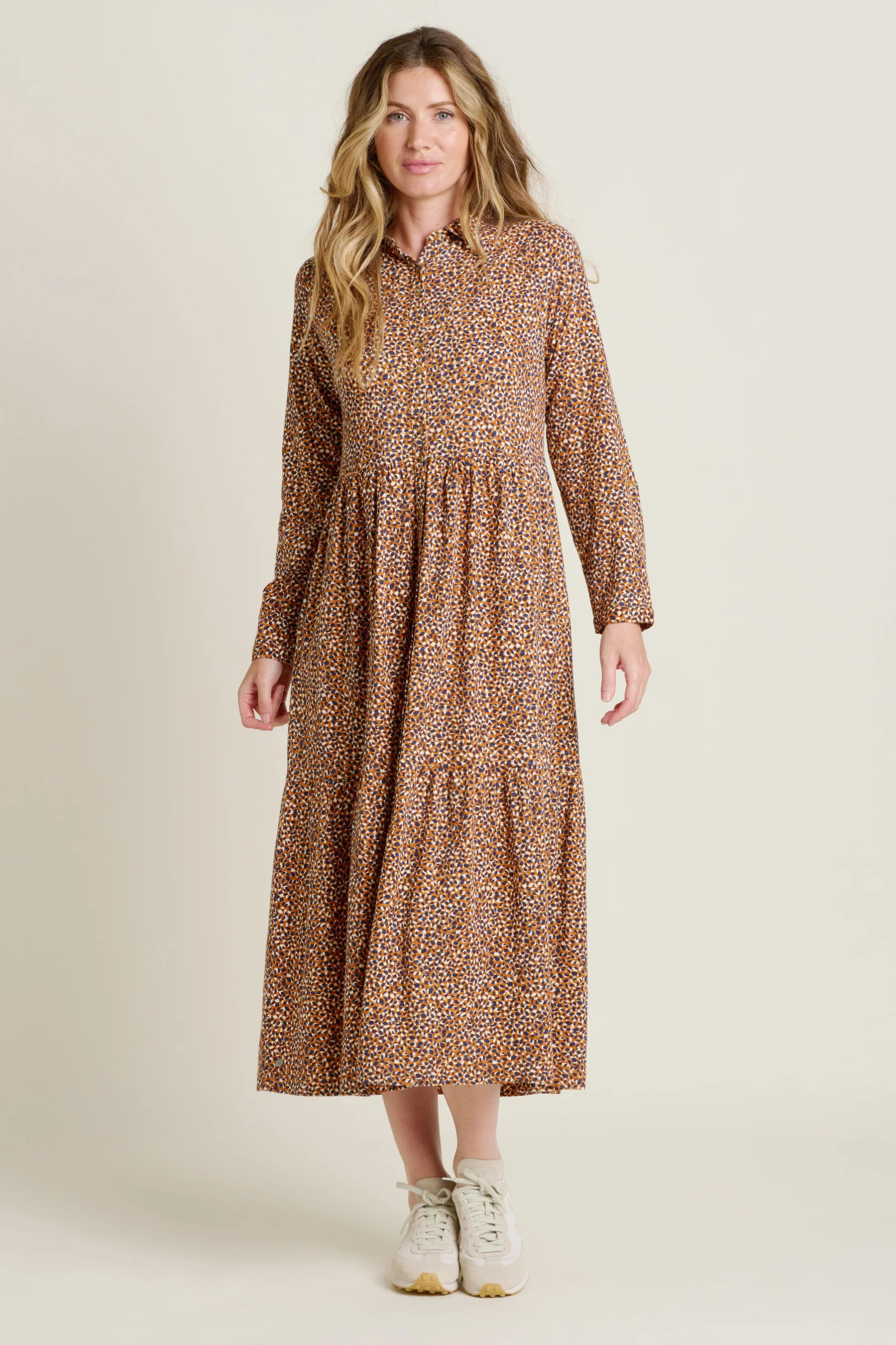 We love patterned jersey shirt dresses. They are so comfortable and easy to wear. The Brakeburn Painted Spot Maxi Dress has a collar, buttons from top to bottom, full length sleeves and a gently fitted waist. Oh, and did we mention the pockets? Yep, those too. Layer with a green thin knit cardi or cream knitted vest as the weather turns cooler.