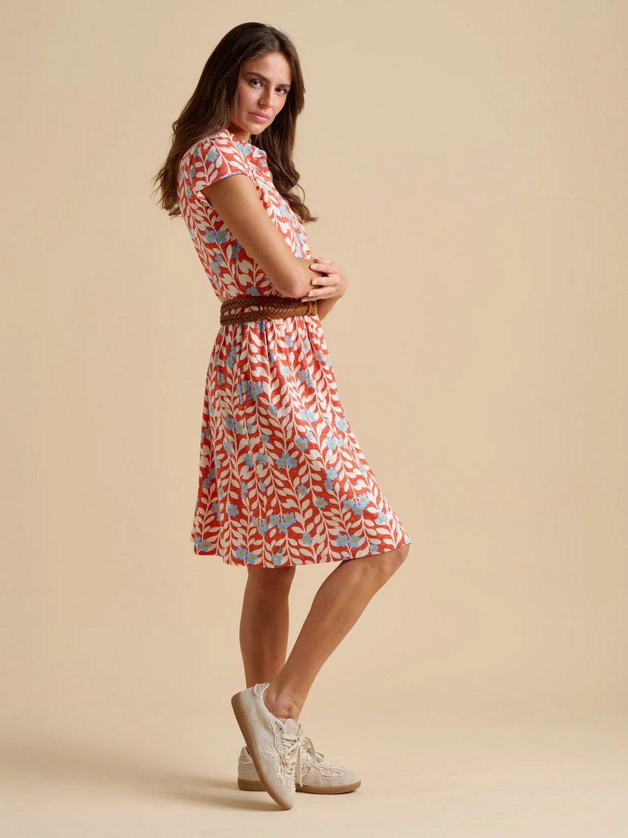 Introduce a burst of colour to your wardrobe with this playful dress. The cupped sleeves and knee-length cut make it perfect for warm days, whether you’re heading to a summer market or BBQ. This dress is sure to keep you looking fresh and fun all season long.