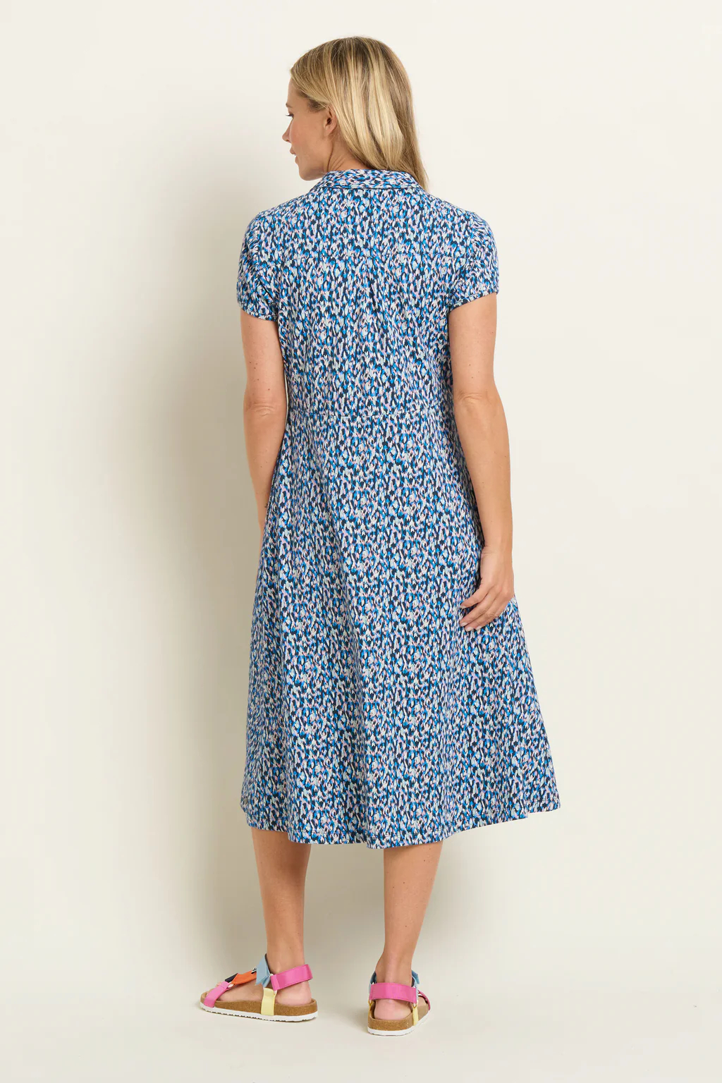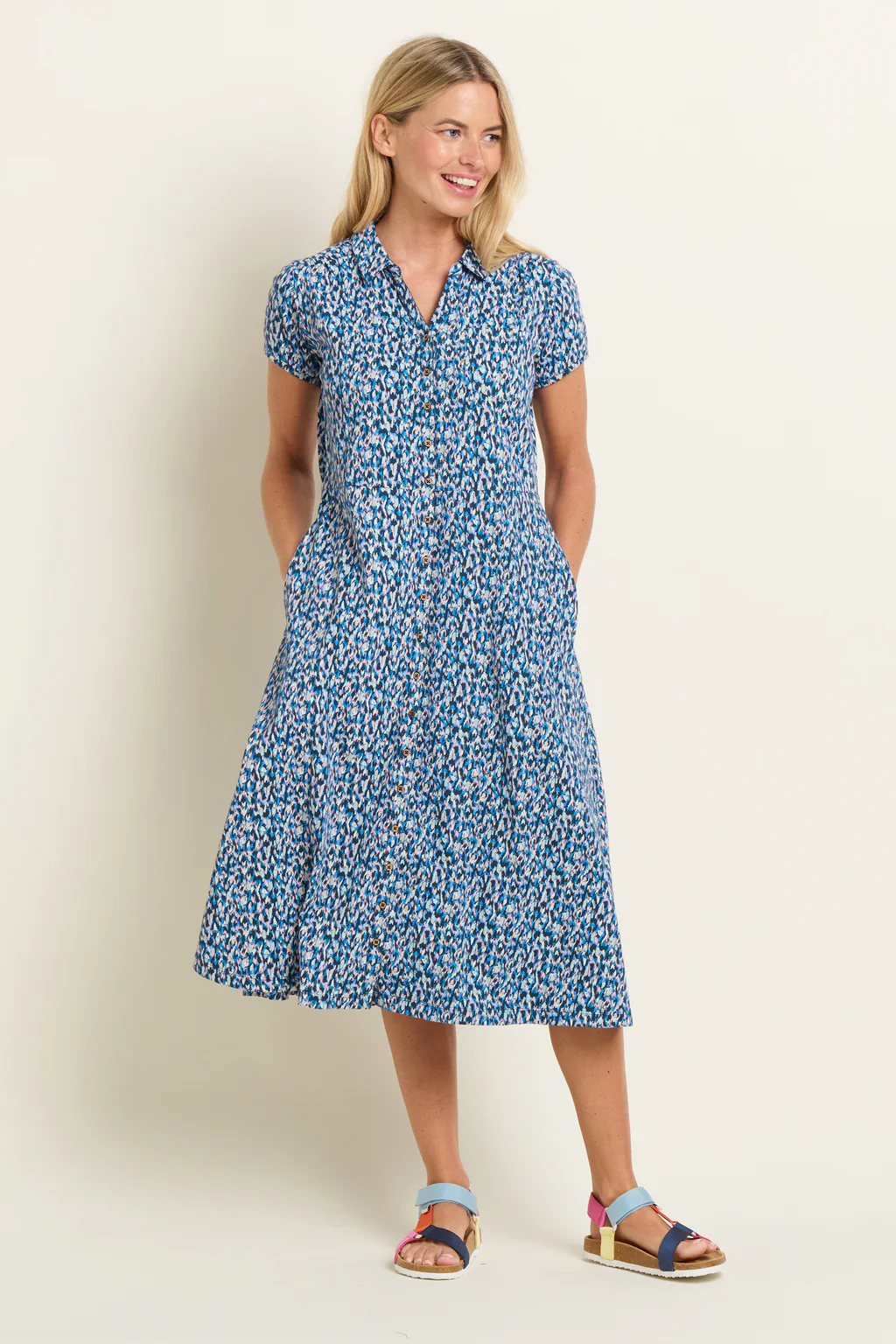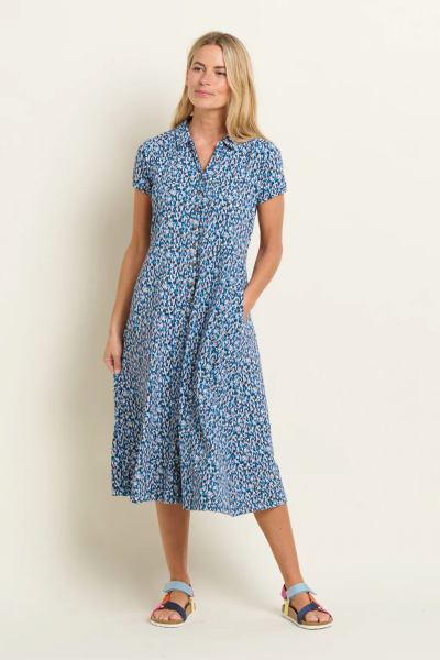 Camo print, but not as you know it. Almost verging on an animal print, the Brushed Camo shirt dress will help you stand out for all the right reasons. Featuring pockets and more pockets – at the waist and on the chest – it’s a fun yet functional jersey midi dress with short sleeves and a flattering, modern silhouette. Wear with your favorite sandals, flatforms, or even chunky white trainers for your everyday adventures.