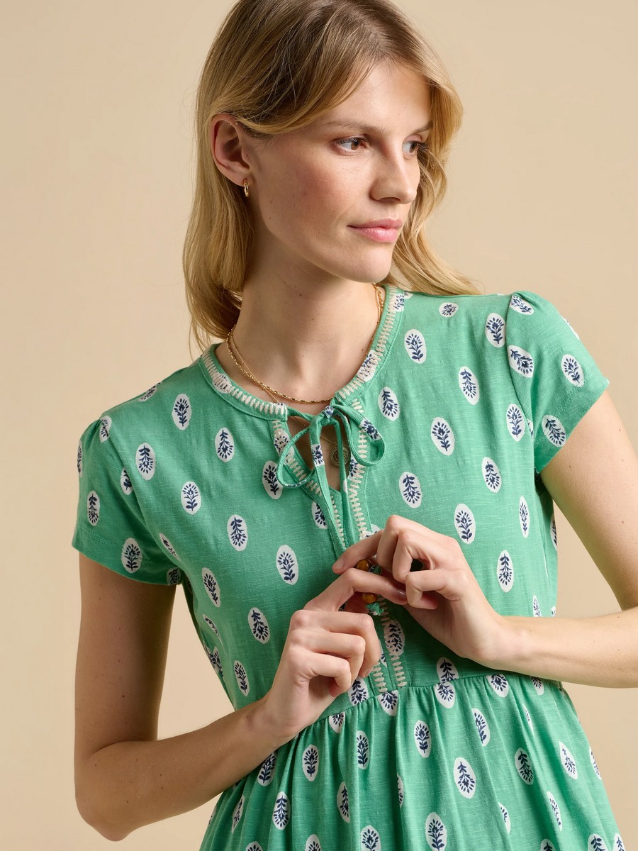Your go-to for elevating your everyday look. With tassels and delicate white sewing detail along the neckline and waist, it’s a casual dress that could work for a variety of summer occasions - from running errands to lunch with friends. Dress it up with sandals or keep it casual with trainers.