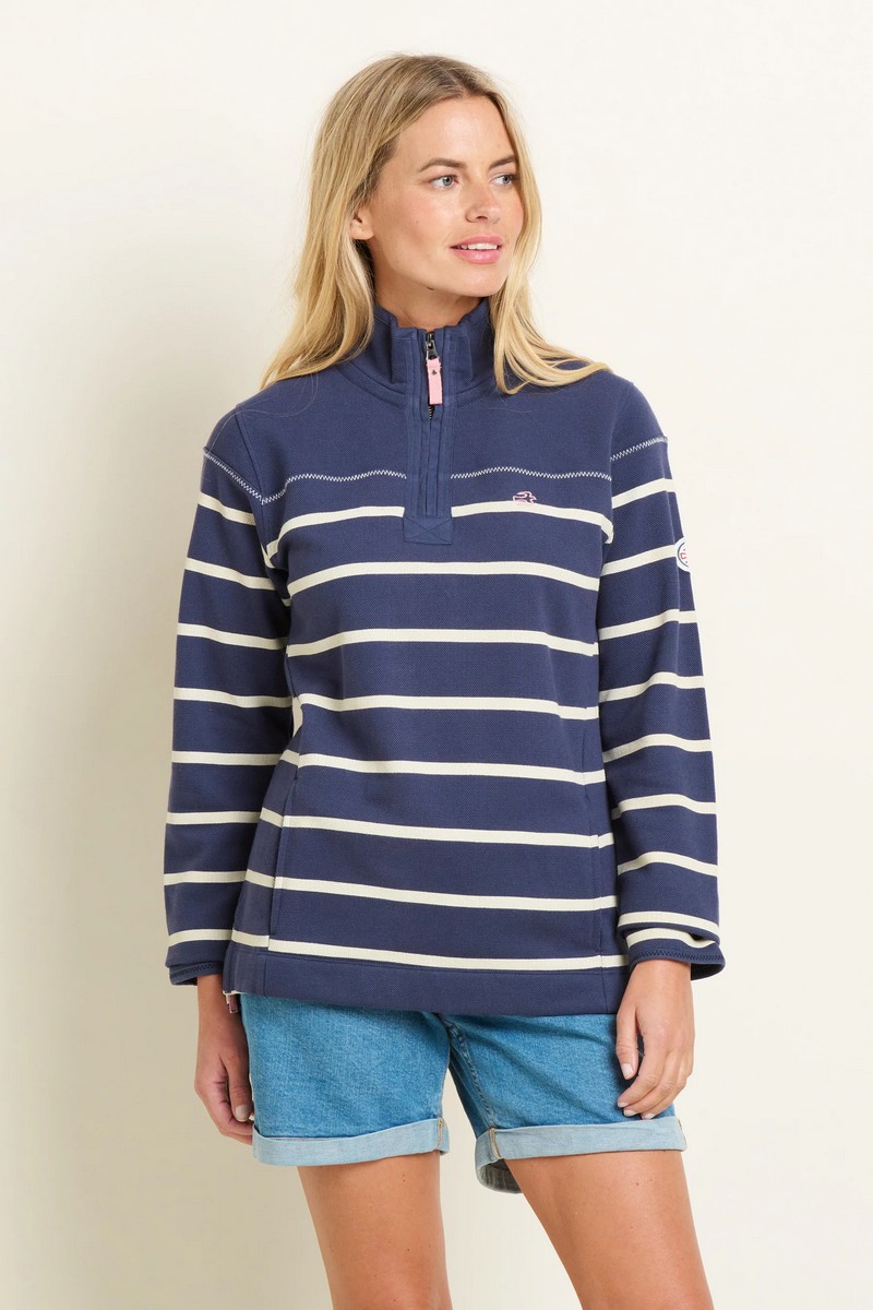 One Off Job Lot Of 8 Ladies Brakeburn Navy Stripe Quarter Zip