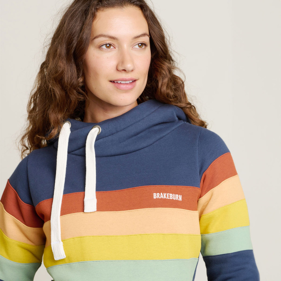 Become queen of casualwear in this bold print hoodie. The cross style hood is one of Brakeburn's most popular designs, and they've given it a bold new look for the year in Brakeburn's very own Retro Stripe Elise Hoodie's