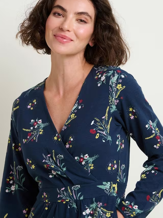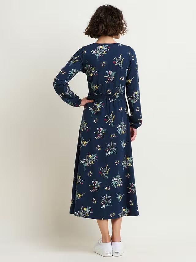 Flattering in all the right places and complete with pockets, this floor-length dress from Brakeburn is stitched together from a blend imbued with cotton. A feminine choice thanks to the wrap over neckline and long sleeves, it blooms with joy through a refreshing floral print.