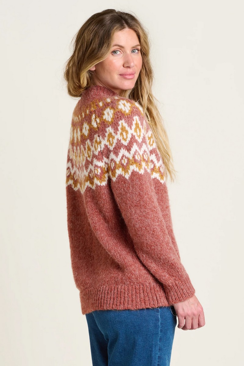 The Brakeburn women’s Chunky Knitted Fair Isle jumper was created for autumnal forest adventures and winter beach walks. This is a fluffy, slouchy fit sweater with a snuggly collar. Wear with skinny jeans or wide leg cord trousers and your favourite boots or trainers.