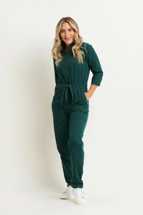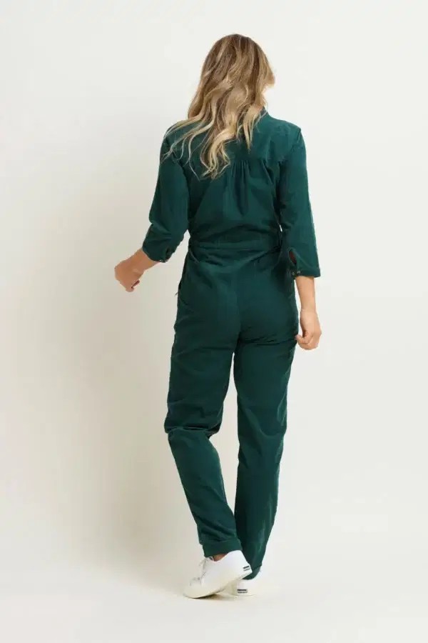 Elevate your outfit with this zip through cord jumpsuit. Made from soft corduroy with a hint of elastane, this comfort stretch jumpsuit is bang on-trend. The three-quarter sleeves with button cuff, turn-up hems, and ruffle collar strike a practical silhouette, while the forest green color is perfect for versatile styling.
