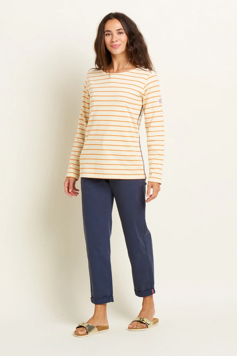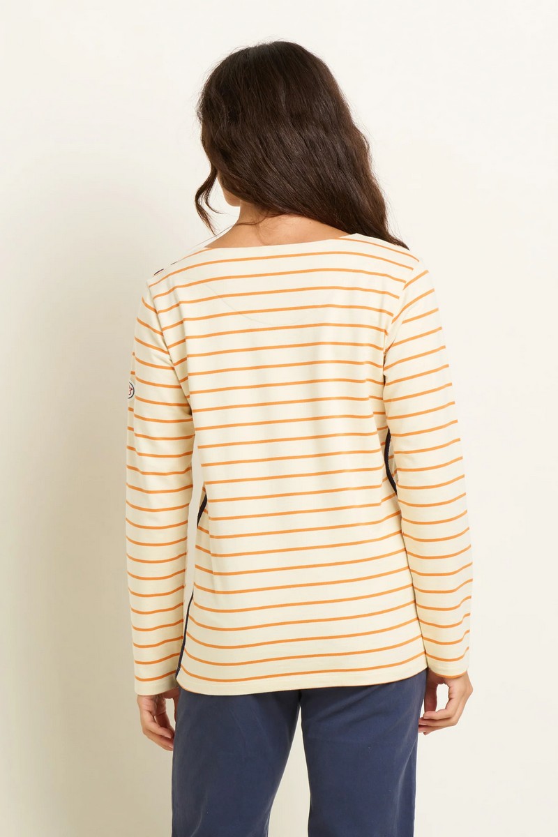 Sail away with the Brakeburn Stripe Bella Crew Sweatshirt. A heavier weight Breton style top, with a fresh colour palette of coral and navy. Timeless, classic, perfect for weekends and holidays by the coast.