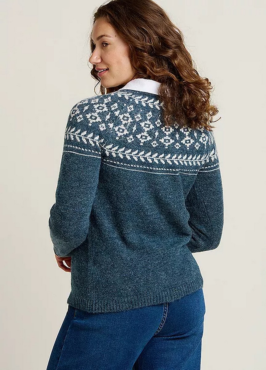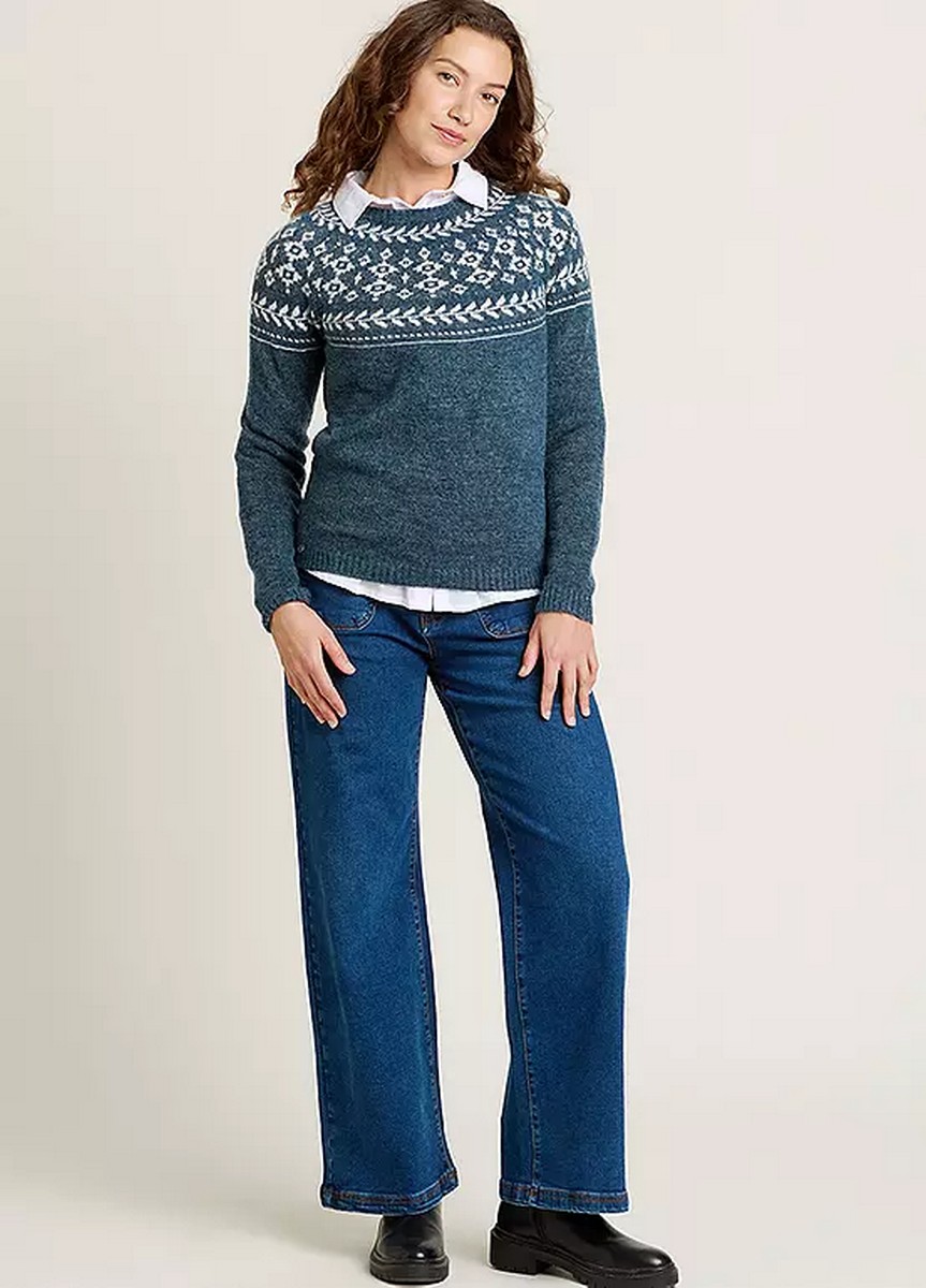 This ink blue women’s Knitted Crew Neck combines leafy botanicals with geometric blocks for a timeless autumn winter sweater you’ll wear year after year. Soft with a flattering fit, the Brakeburn Entwined Knitted Crew Neck jumper looks great with caramel brown cord trousers or workwear duck twill trousers. Cosy woodland cabin optional, but most definitely recommended.