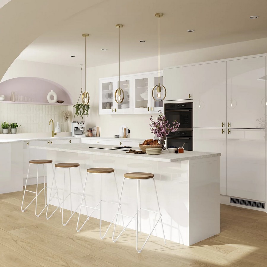 GoodHome Stevia & Garcinia Gloss White Slab Tall Appliance & Larder Appliance Clad On End Panel (x2)