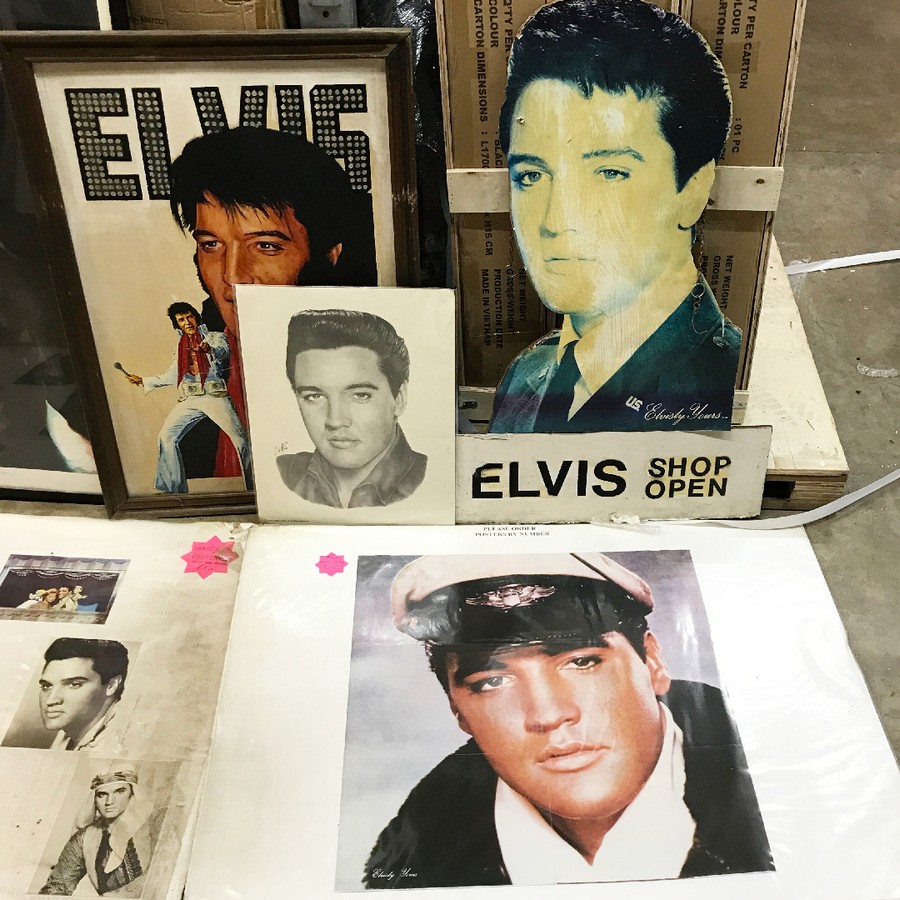 A rare opportunity to grab a full pallet of genuine vintage Elvis Presley memorabilia, packed with unsorted stock from the 70s, 80s and 90s. This load includes a broad mix of art prints, framed pieces, shop signs, photographic negatives, posters, display items, themed gifts and much, much more - all centred around the King himself!