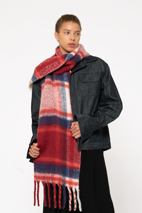 Fluffy, oversized and vibrant, this scarf is a contemporary take on a classic design. Exceptionally soft and cosy, yet crafted entirely from recycled plastic bottles that may have otherwise ended up in oceans or landfill.