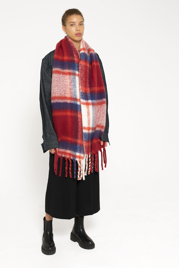 Women's Oversized Plaid Scarves - Red & Navy