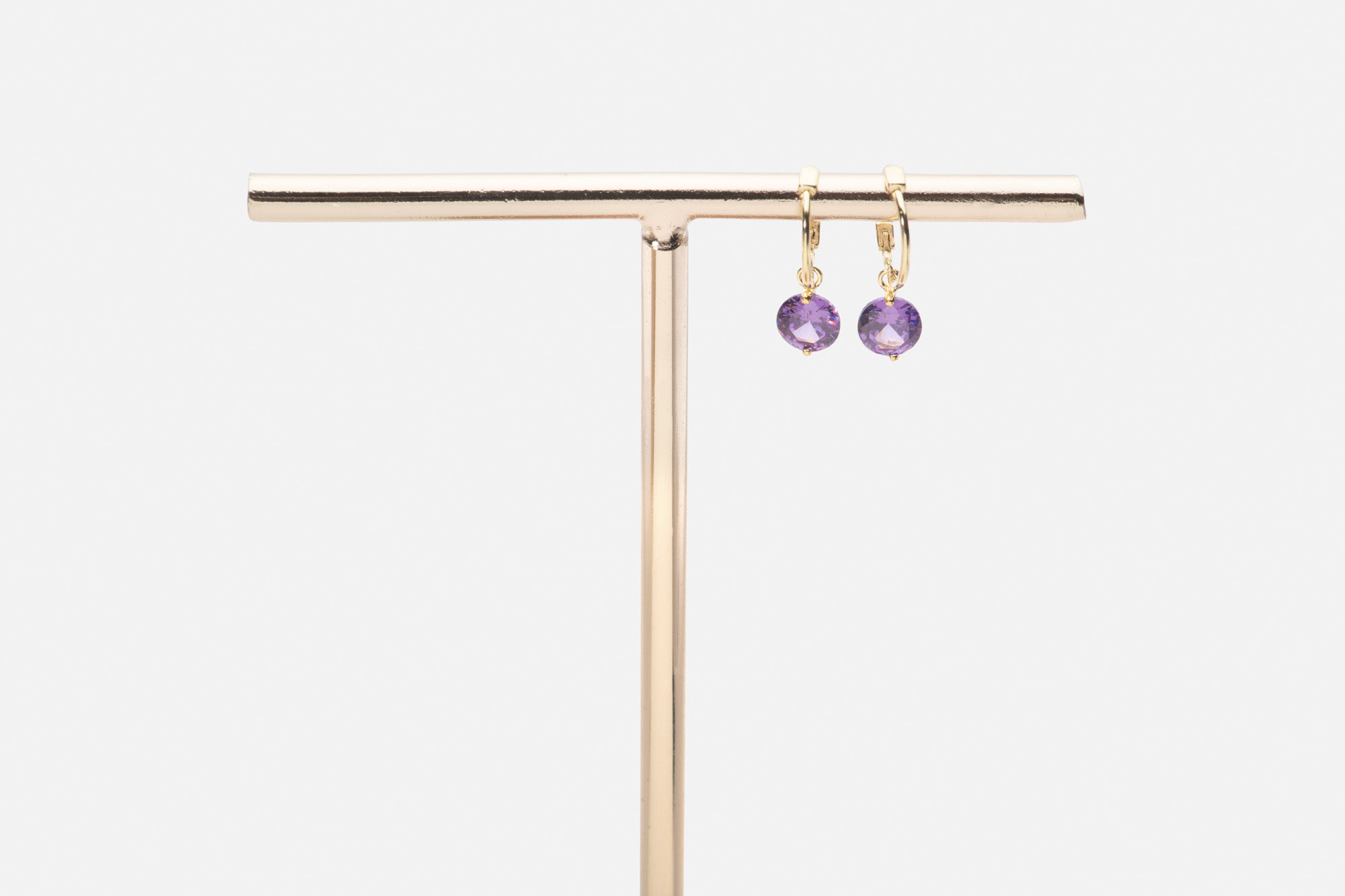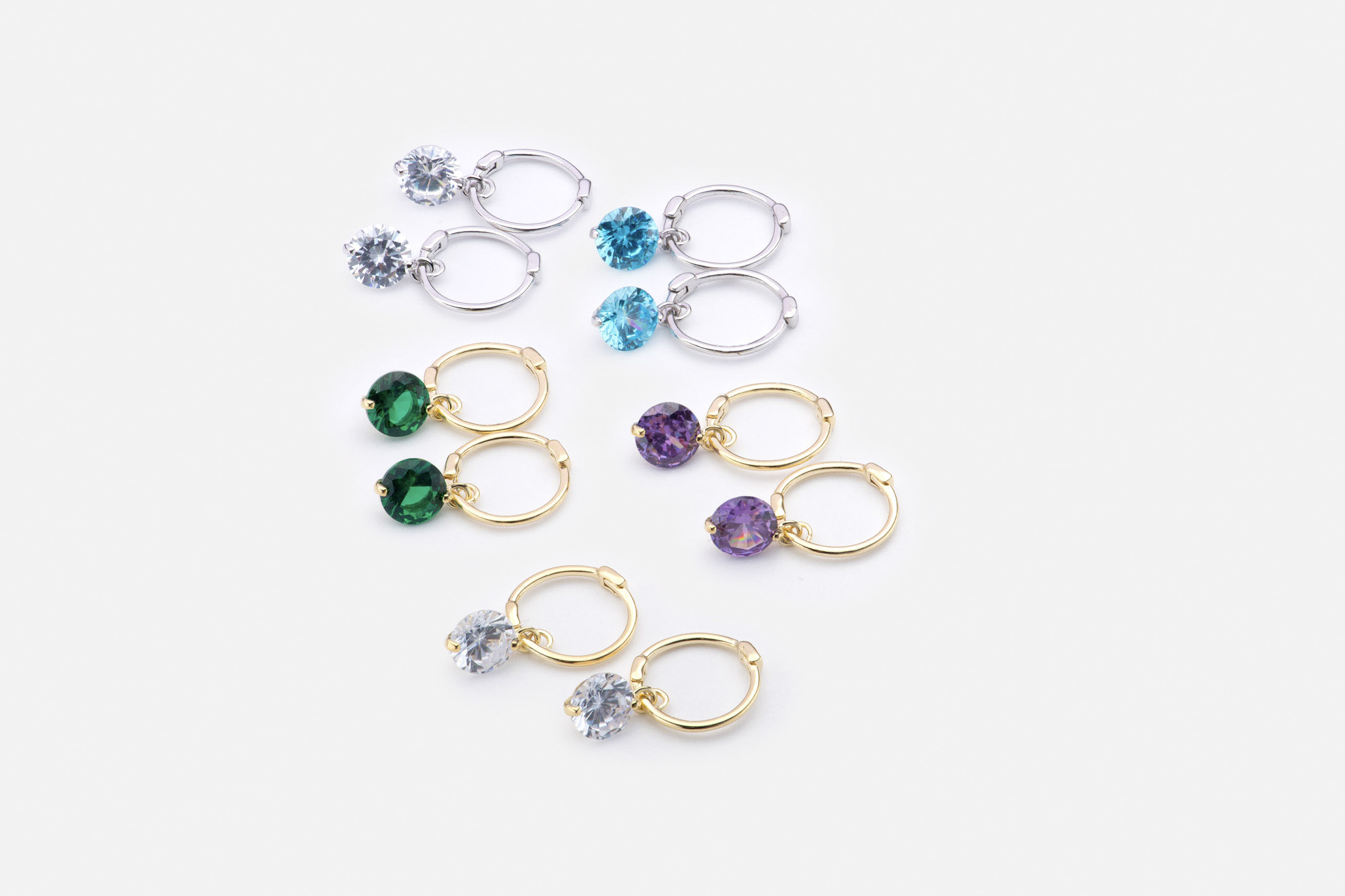 CZ stone in rich amethyst (february) emerald (May) and clear diamond (April).