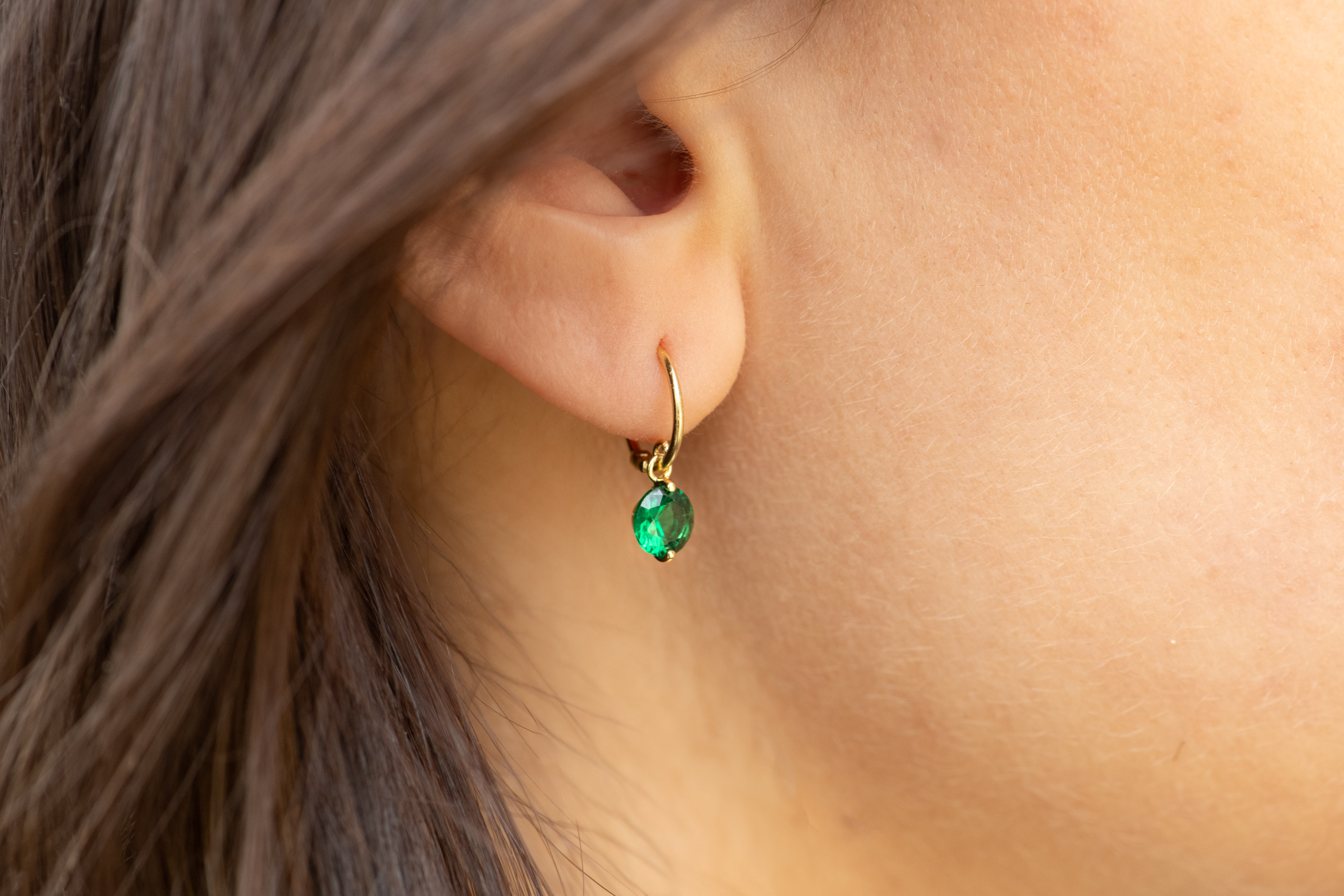 Sterling Silver Gold Plated Huggy Hoop Birthstone Earrings