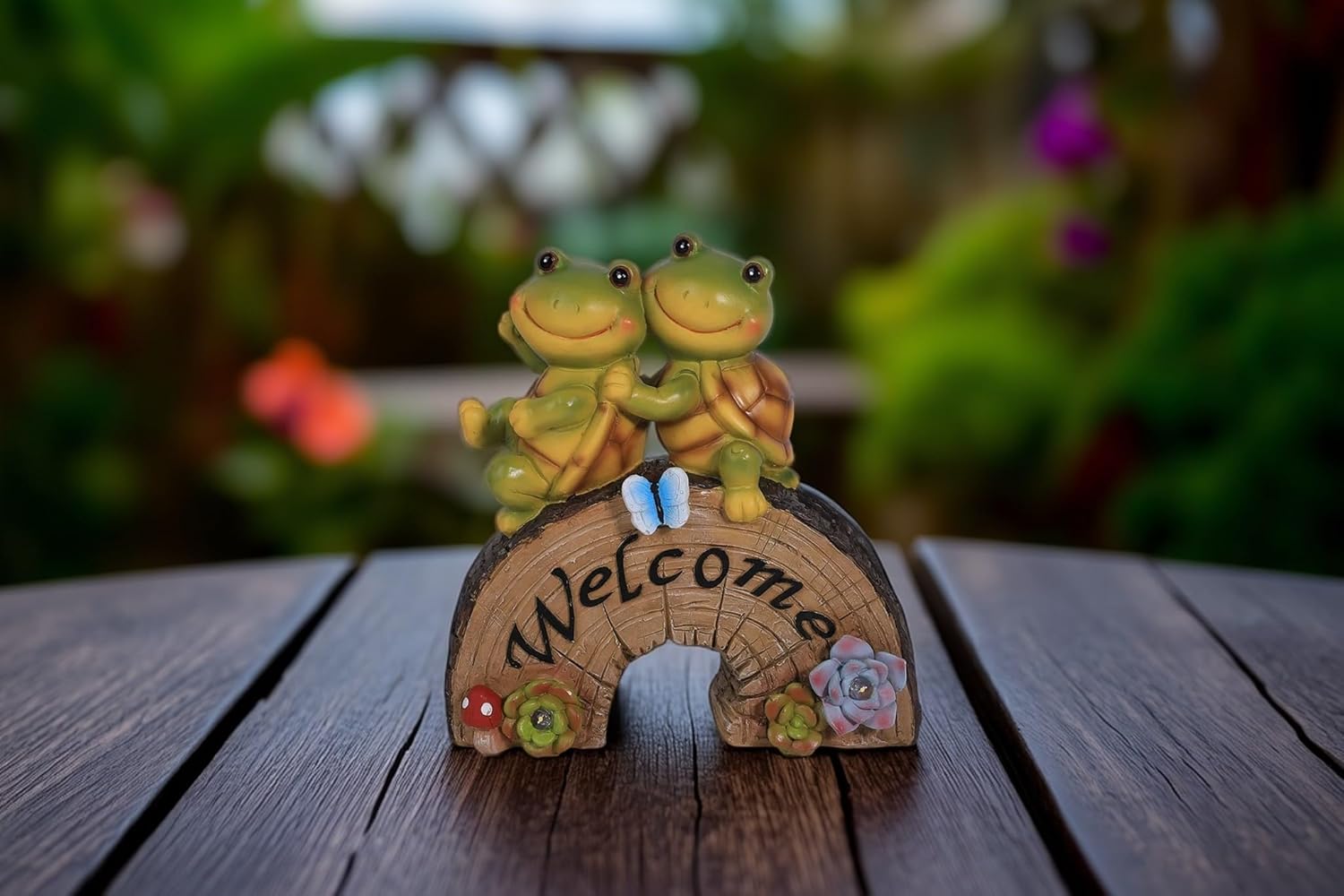 - OUR AMAZING TORTOISE GARDEN ORNAMENTS OUTDOOR FIGURINES ARE SURE TO ADD A SMILE TO YOUR DAY - This fun decorative garden ornament gifts figure is sure to surprise visitors. Add a touch of fun to your patio, or conservatory with this amazing light up turtle. Auto turns on at dusk and off at dawn. Our turtle outdoor decor statues are Eco-friendly and hassle-free.