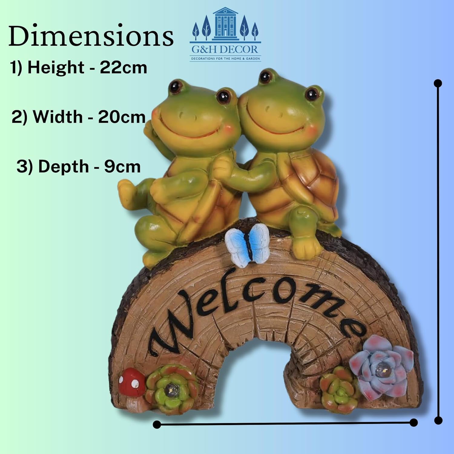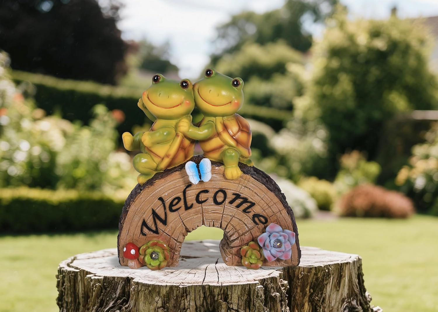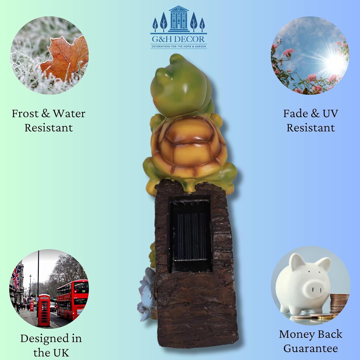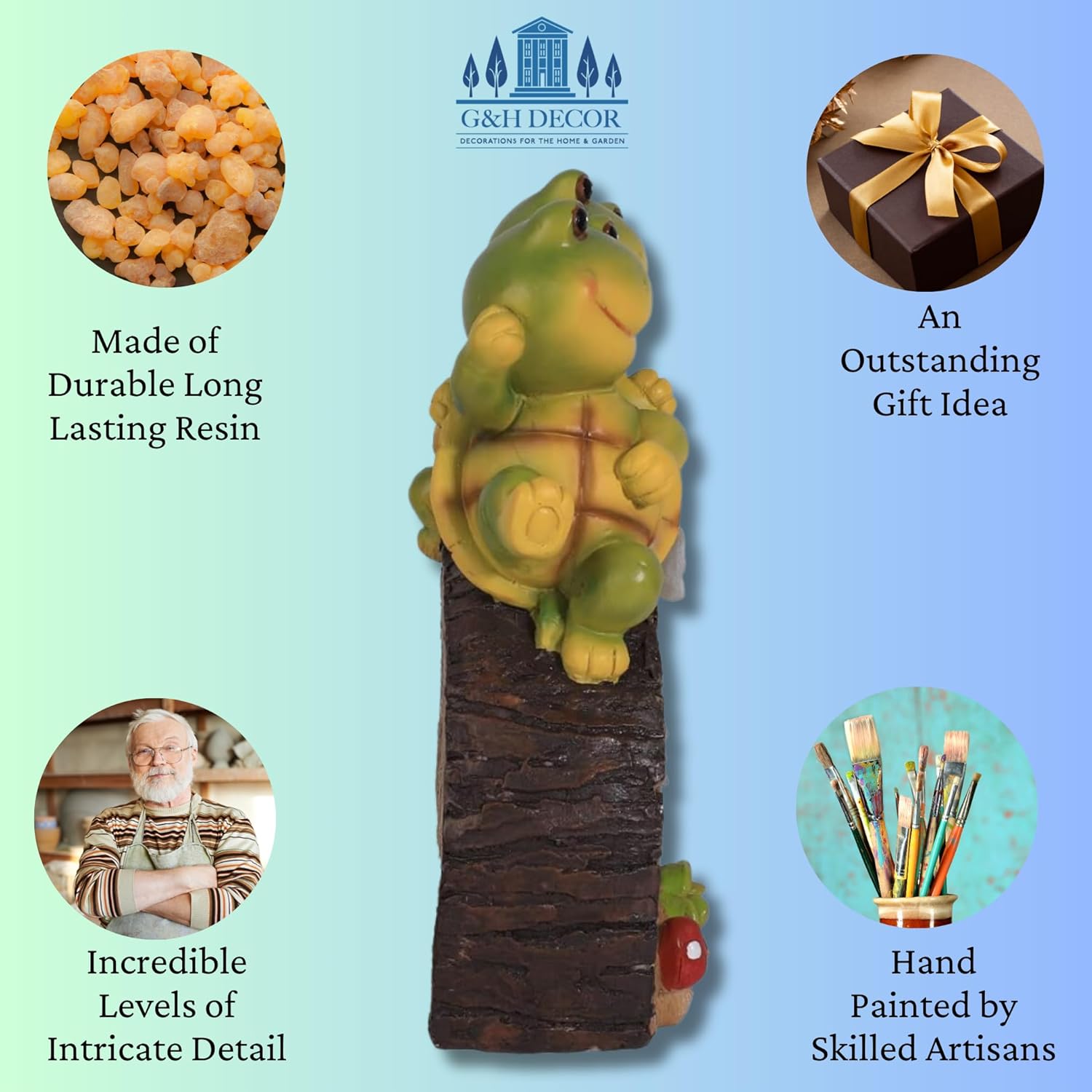 - A WARM GIFT FOR ANYONE WHO LIKES A TURTLE ORNAMENT - Our animal solar garden ornament figurines are one of the best gifts you can give. Outr turtle gifts for women is a perfect present for your family and friends at Christmas, for a Birthday or as a Housewarming. These two baby turtle garden ornament playing see saw on a log is large and measures 26cm x 19cm x 10cm.