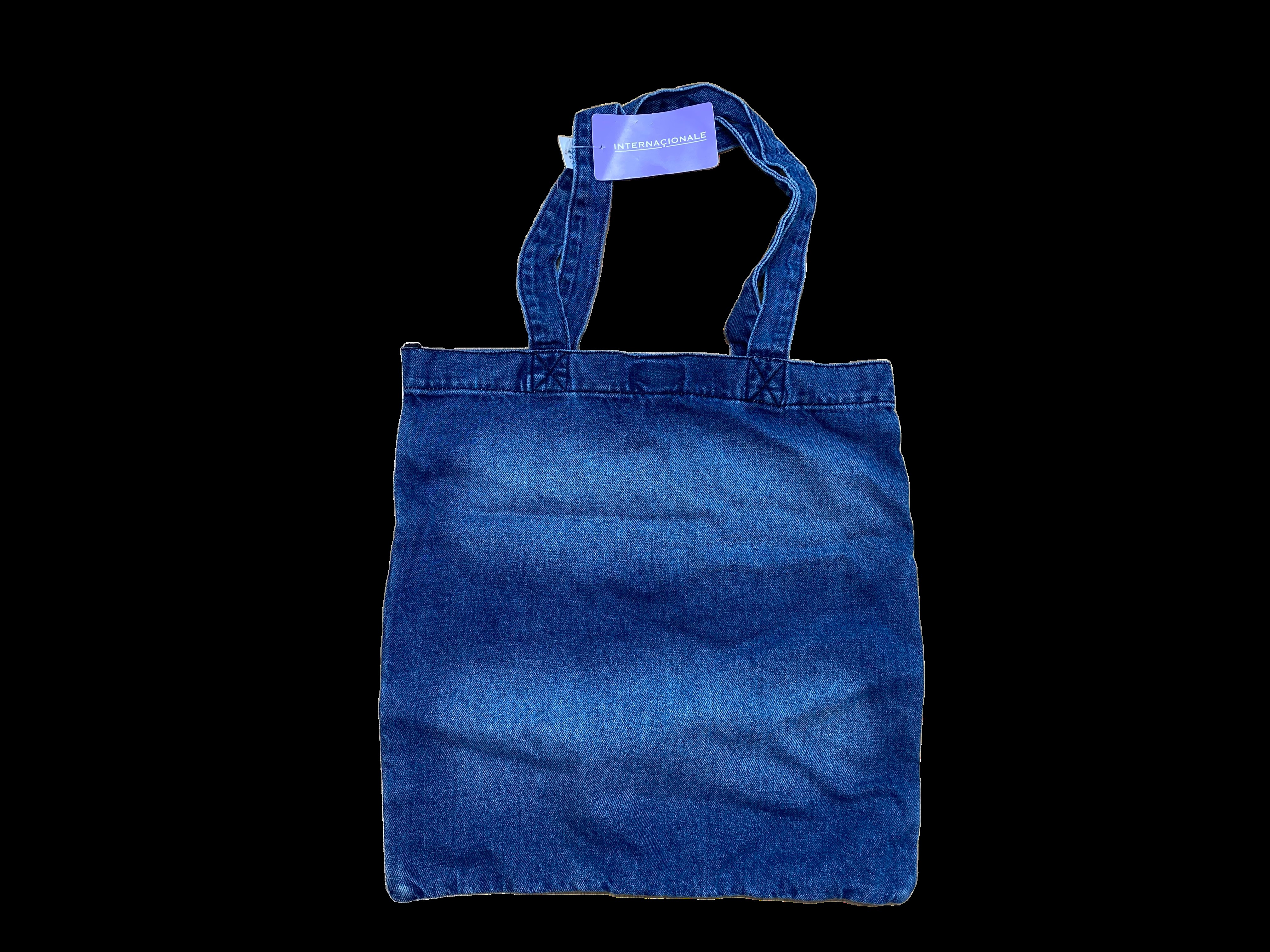 This blue 100% denim shoulder bag, has a Velcro security fastening, located centrally between the shoulder straps. Additionally there is an internal security pocket for personal possessions, like your mobile phone or purse. When flat, the bag measures 360mm high and 340mm wide. Each bag weighs 151g appx