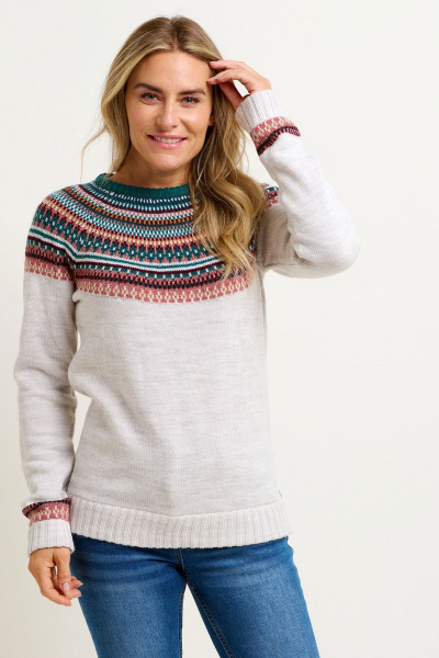 Stand out in a crowd of Fair Isle jumpers with a hint of subtle sparkle. Featuring a ribbed round neck, cuffs, and hem, the colourful Fair Isle pattern adds a festive touch to this warm and cosy grey marl jumper.