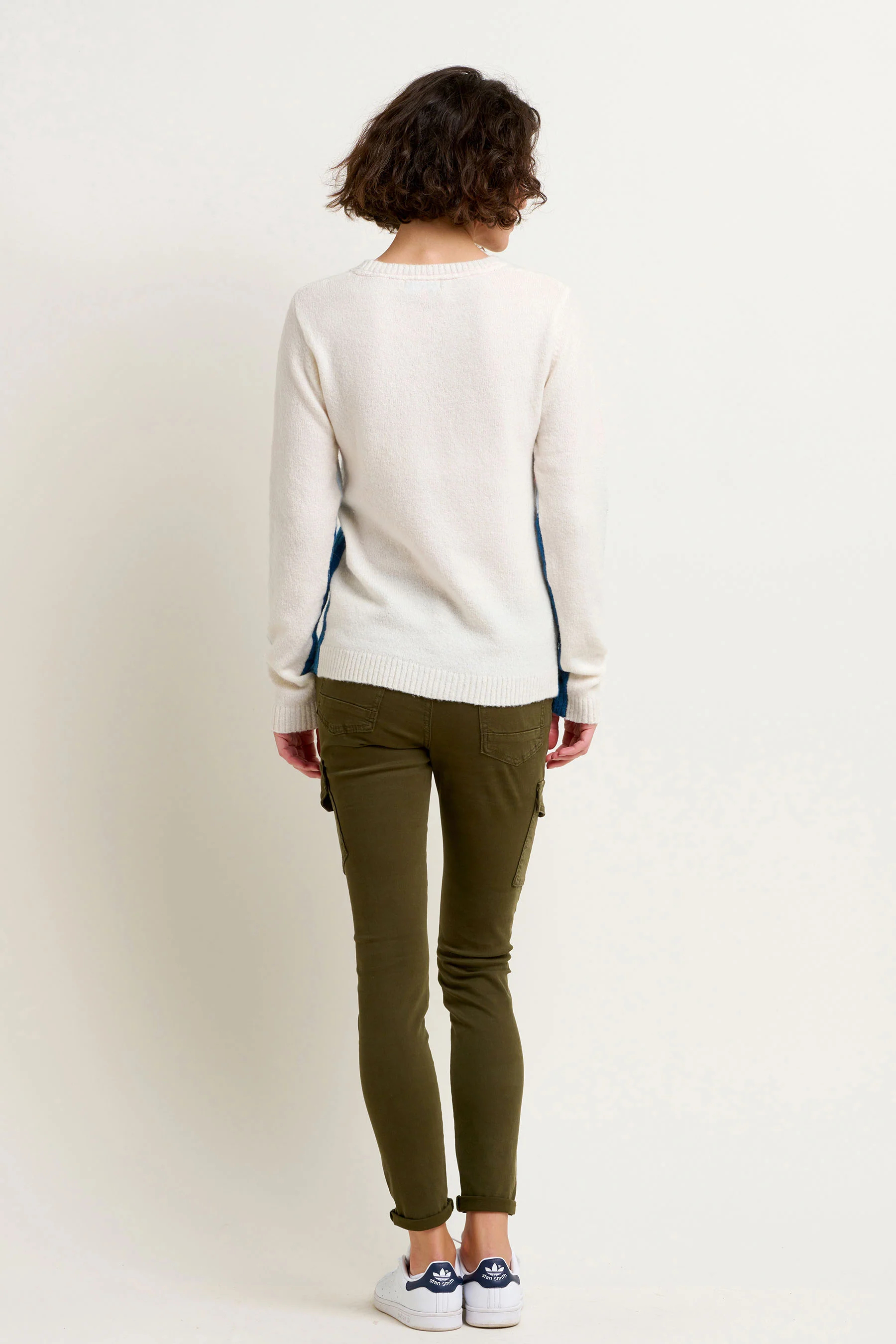 Made using recycled plastic bottles, this super soft autumn knit jumper is the perfect addition to your knitwear collection. A ribbed neckline, hem and cuff create a comfort fit for the pullover design, and a bold design on the front and sleeves is inspired by the Dorset coastline.