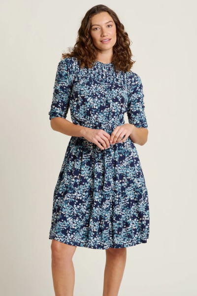 Abstract floral prints are a versatile way of incorporating more pattern and colour into your winter wardrobe. The Brakeburn Jasmine is a knee-length dress has elasticated ¾ sleeves, a pleated chest panel and a delicate tie belt to create a flattering silhouette. Dress up for occasions or wear with a denim shirt and boots for coffee with friends.
