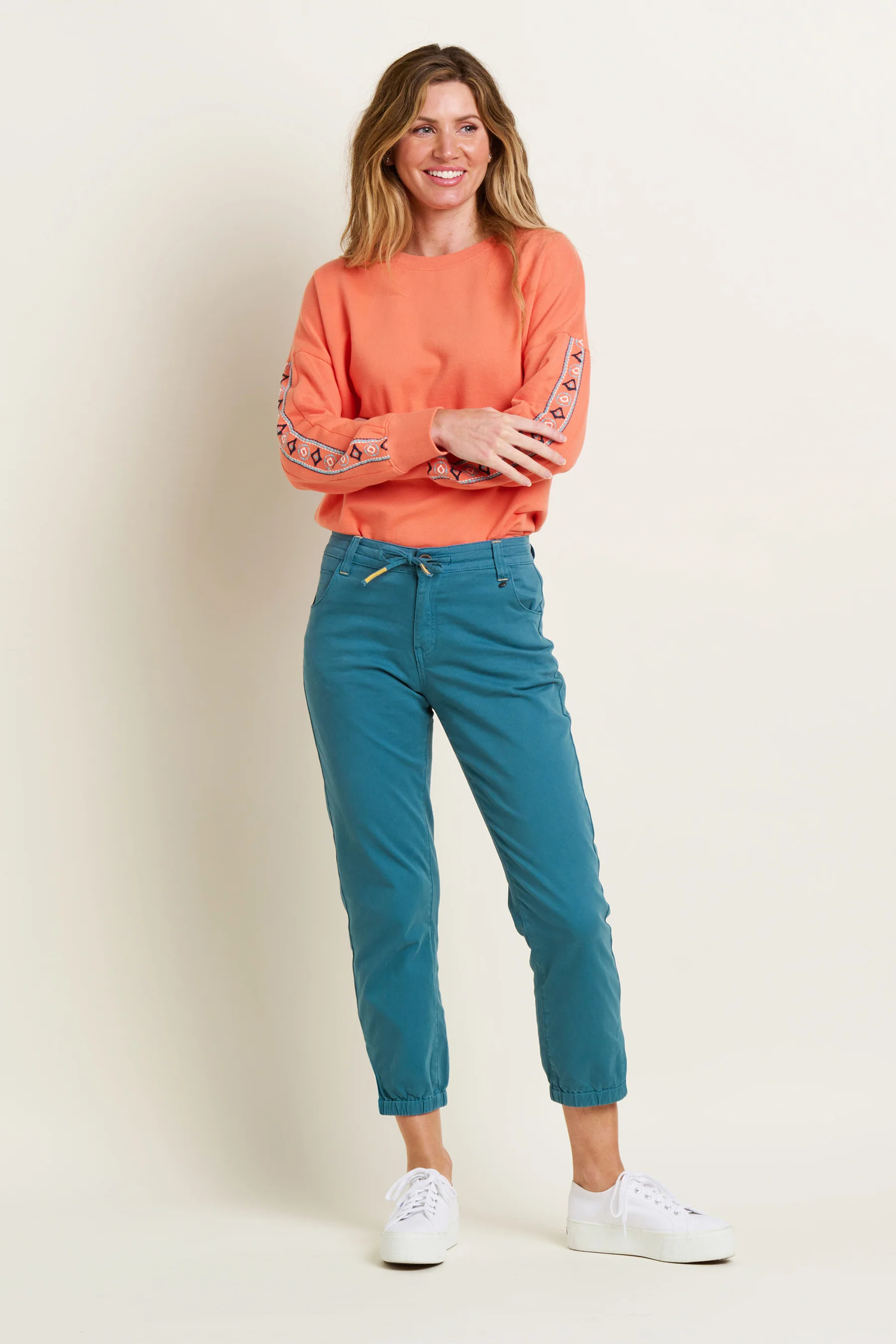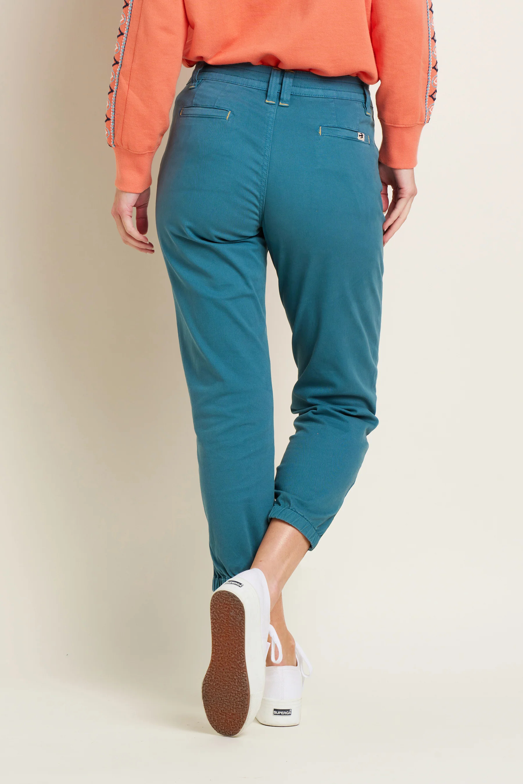 Sail away with a pair of Brakeburn Hem Vent Blake trousers. Cropped with a hint of stretch, these straight leg cotton teal trousers are ideal for spring and summer. Featuring decorative drawcords at the waist and cuffs at the hem, the Hem Vent Blake trousers are the perfect fit for relaxed living.
