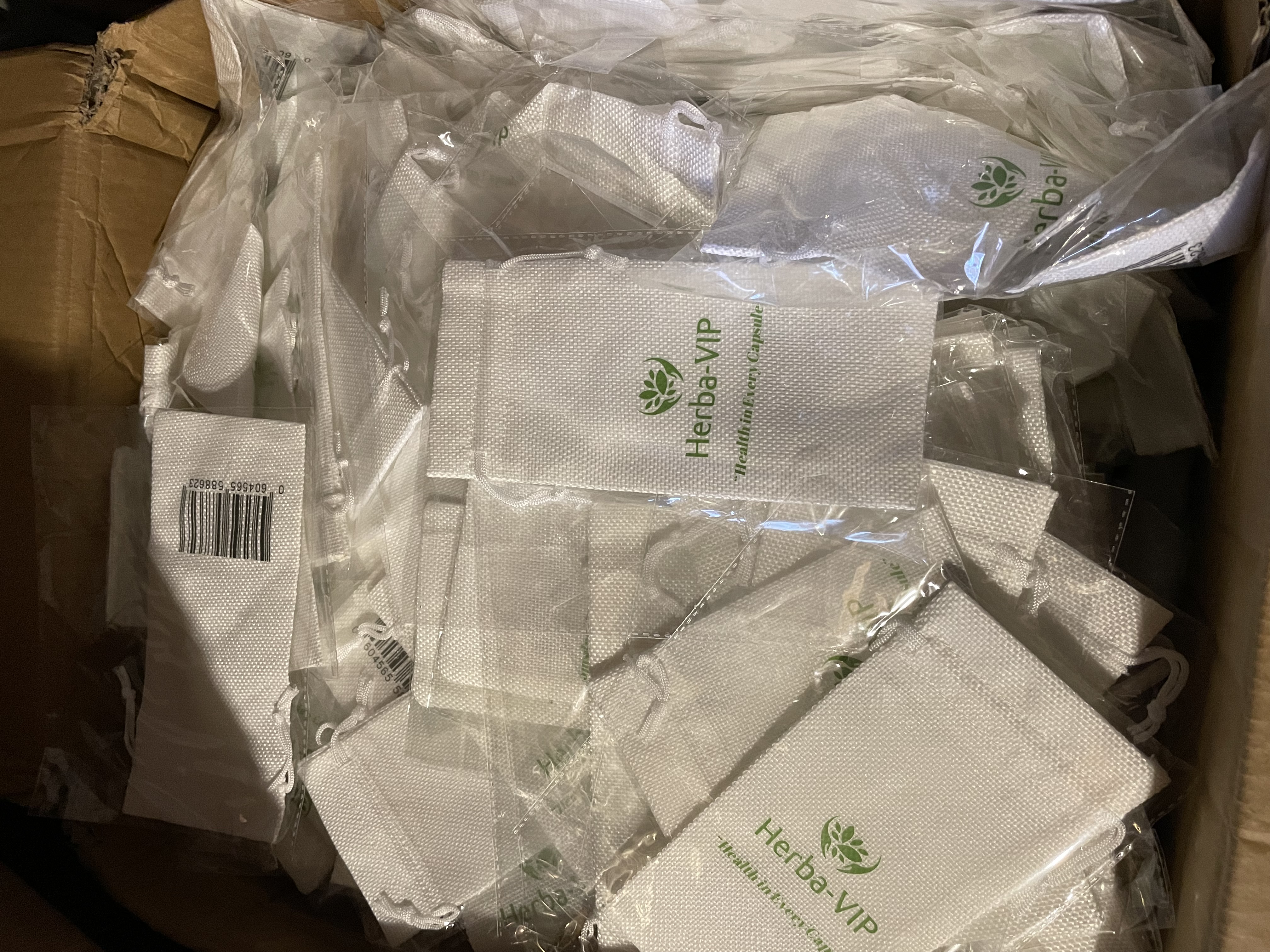 Wholesale lot of 100 Branded burlap bags 9x20cm, brand new job lot