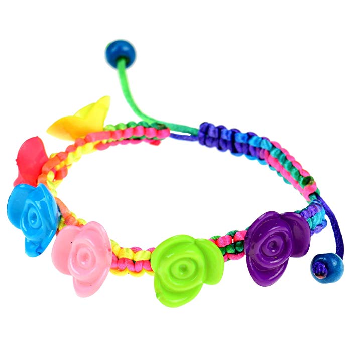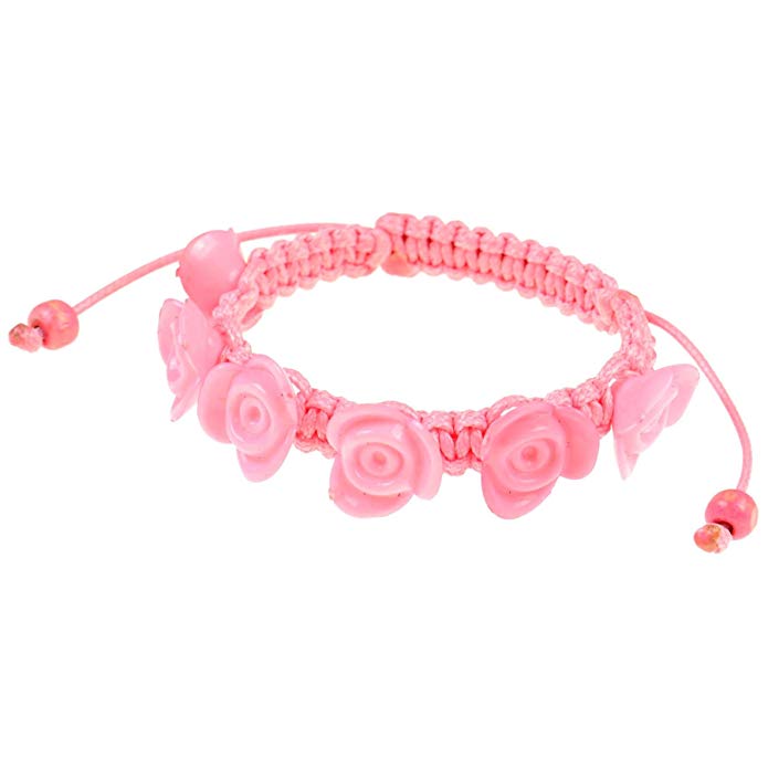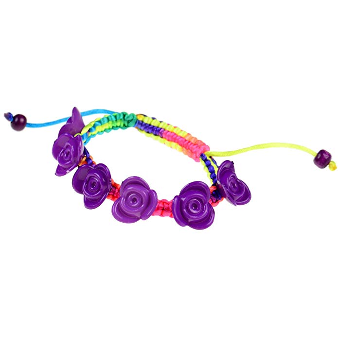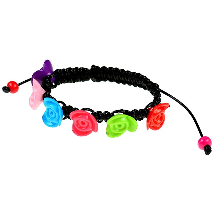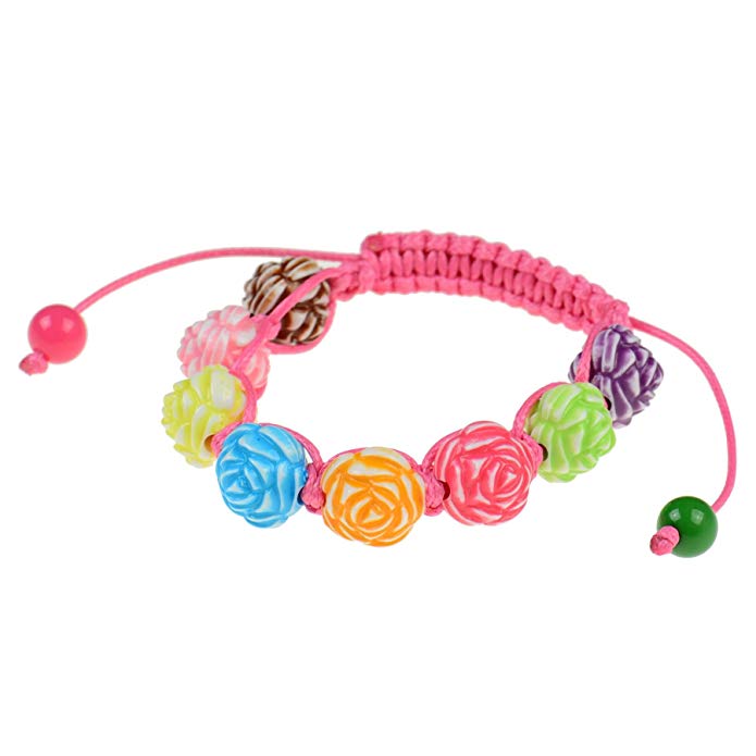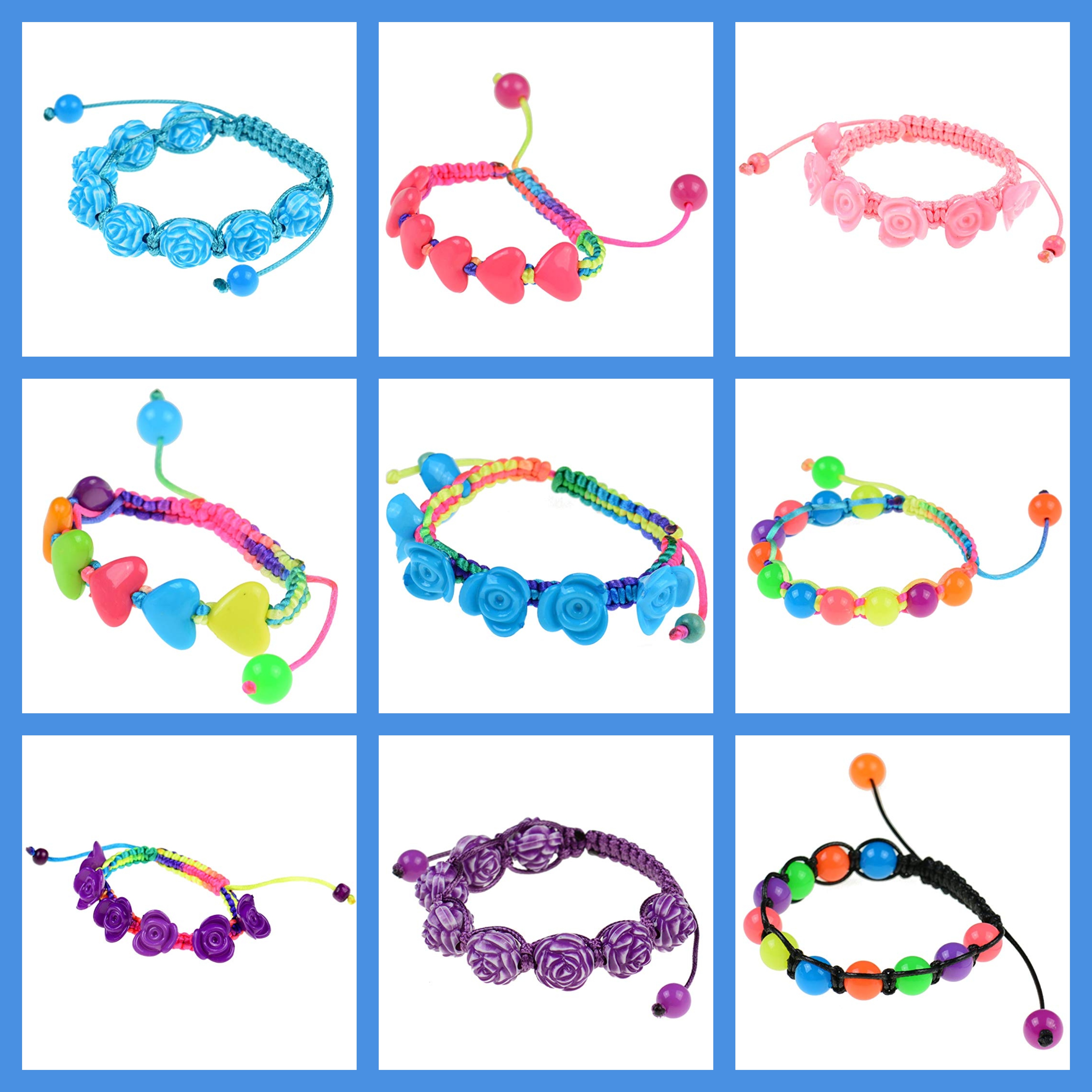 Wholesale Lot Of 100 Mixed Heart, Rose, Flower & Round Bead Fun Acrylic & Cord Kids & Adults Bracelets