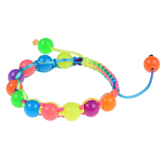 You will receive 100 acrylic bracelets with fabric cord in lots of colour variations. The bracelets are adjustable so they are suitable for adults or children, with the approximate adjustable size of 14-22cm's.