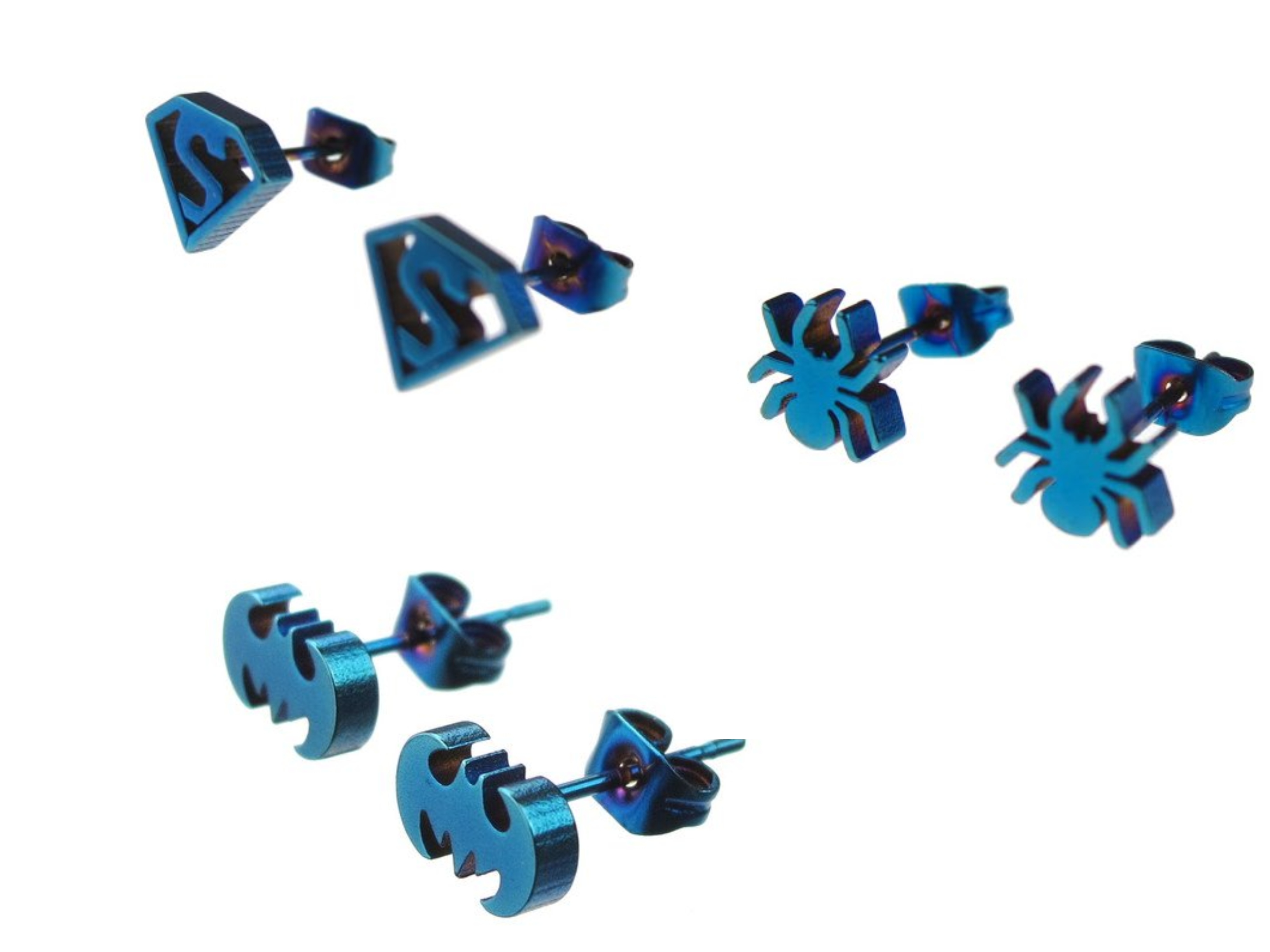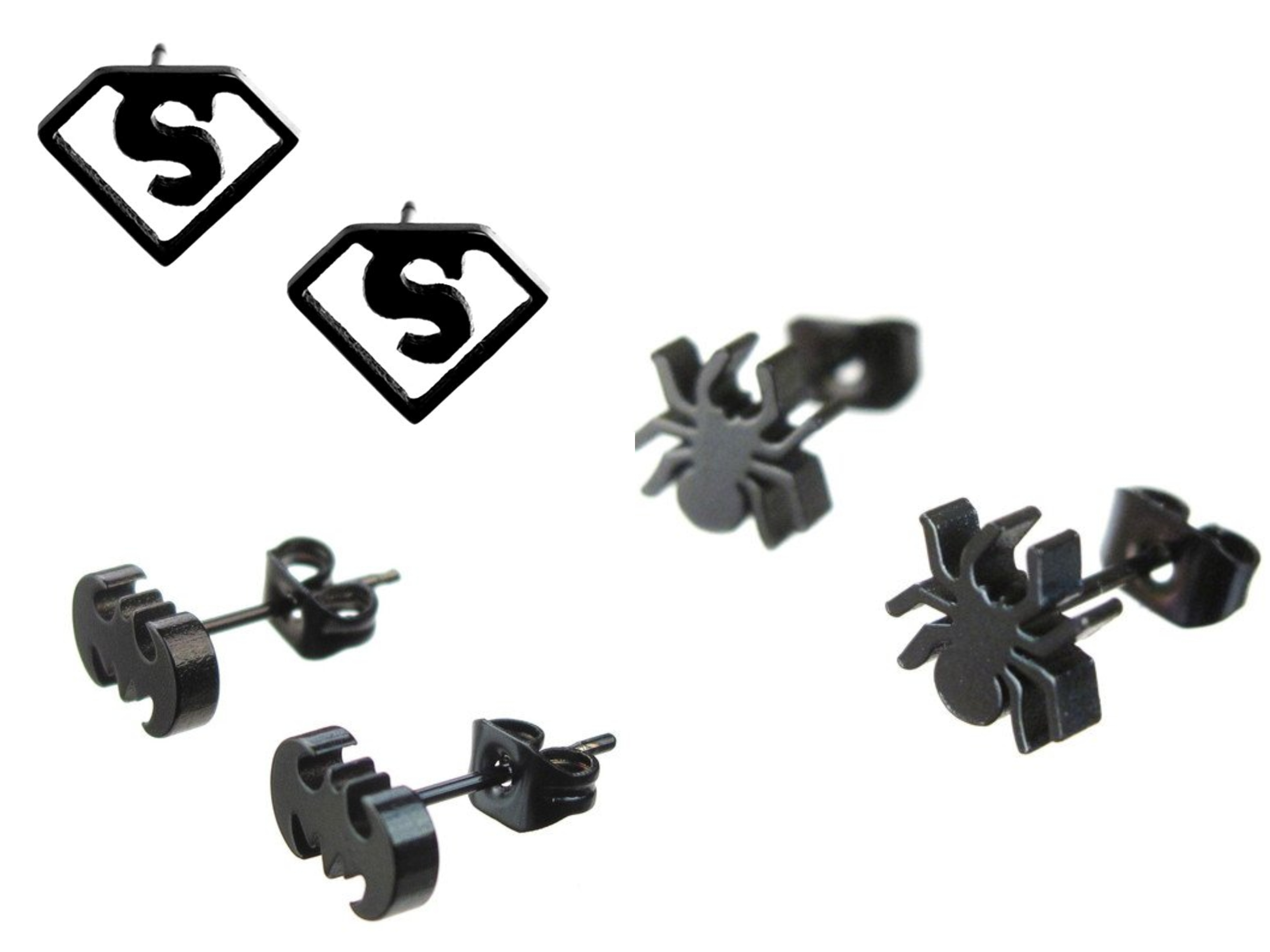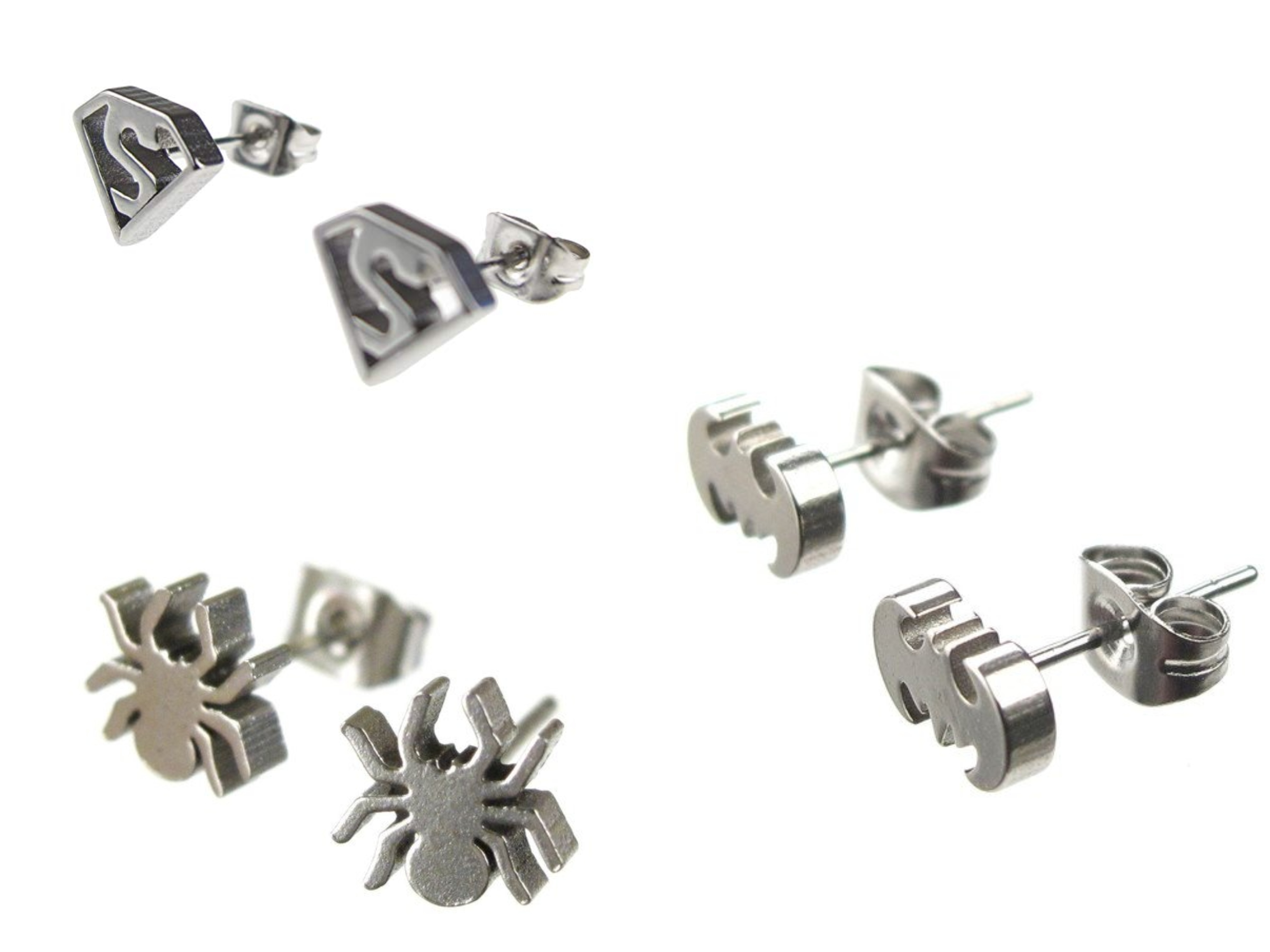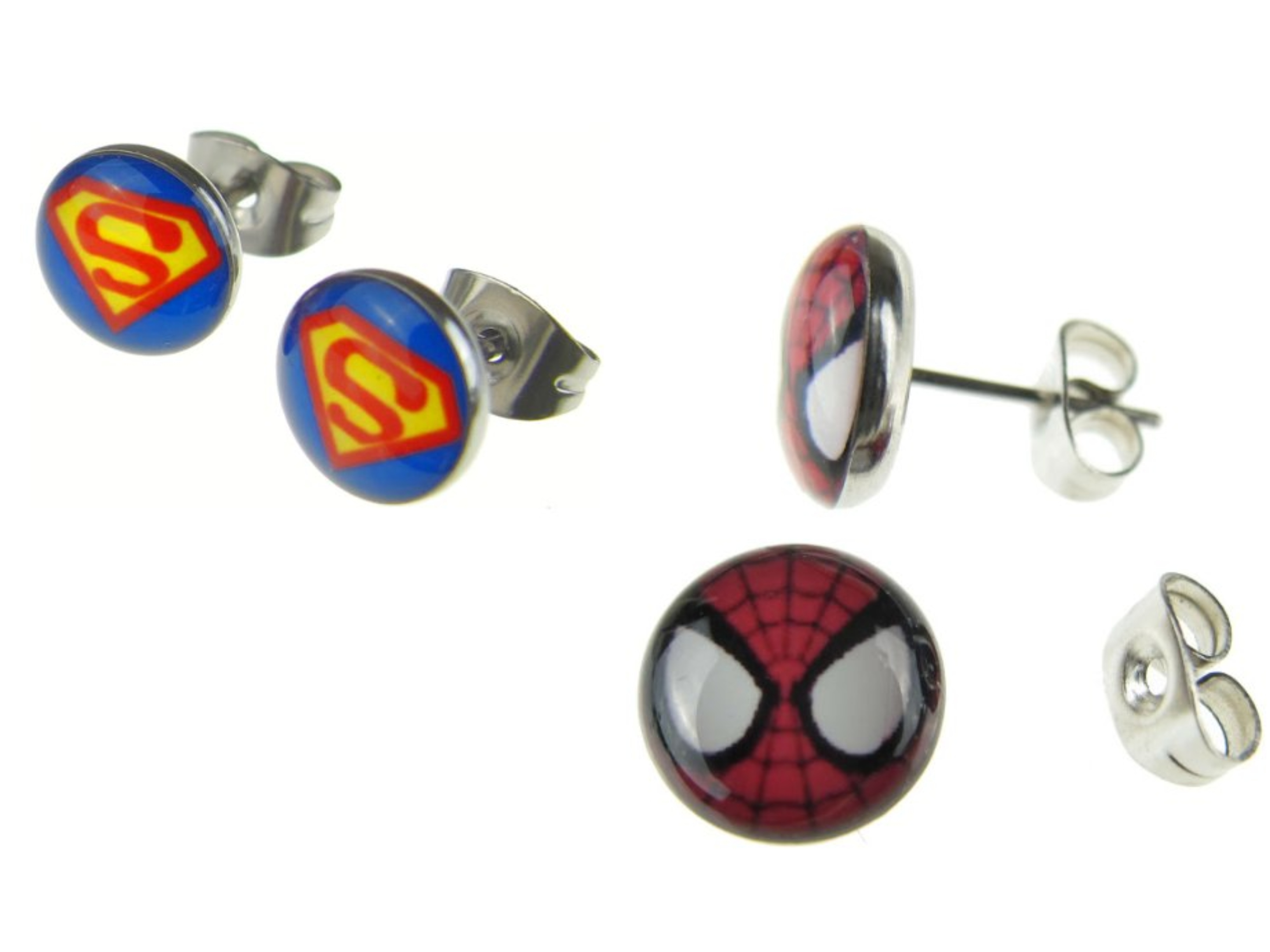 You will receive 100 individual superhero earring and plugs inspired by the superheros Batman, Spiderman and Superman.