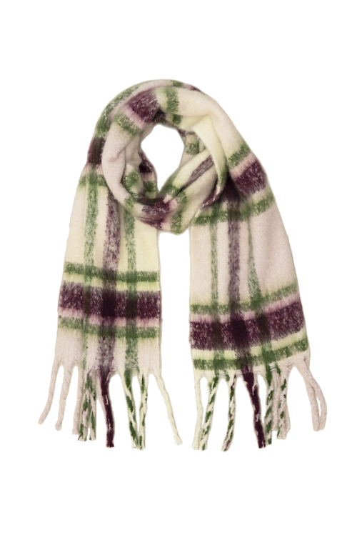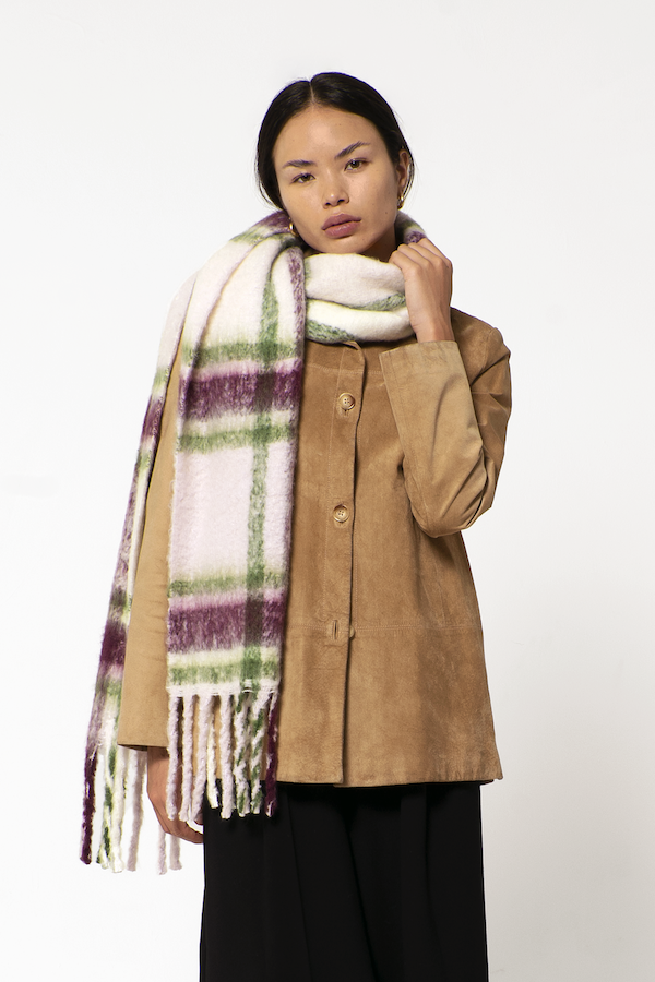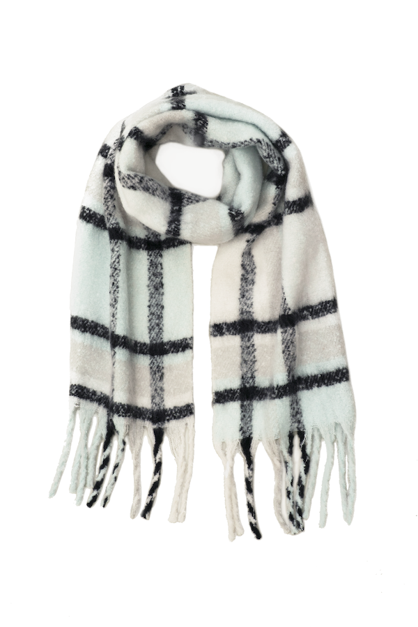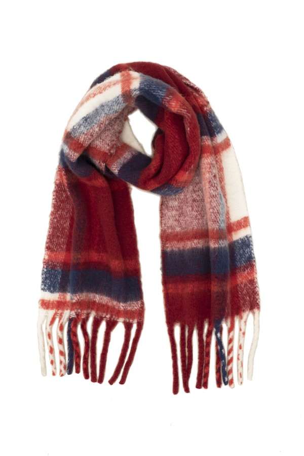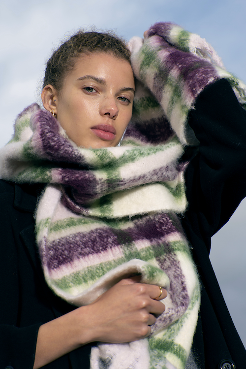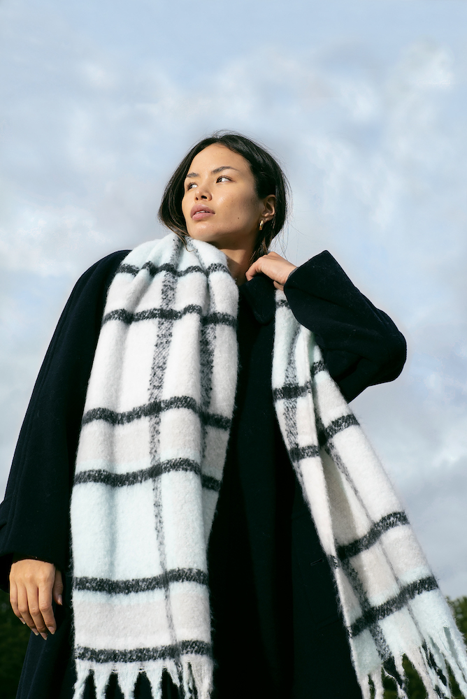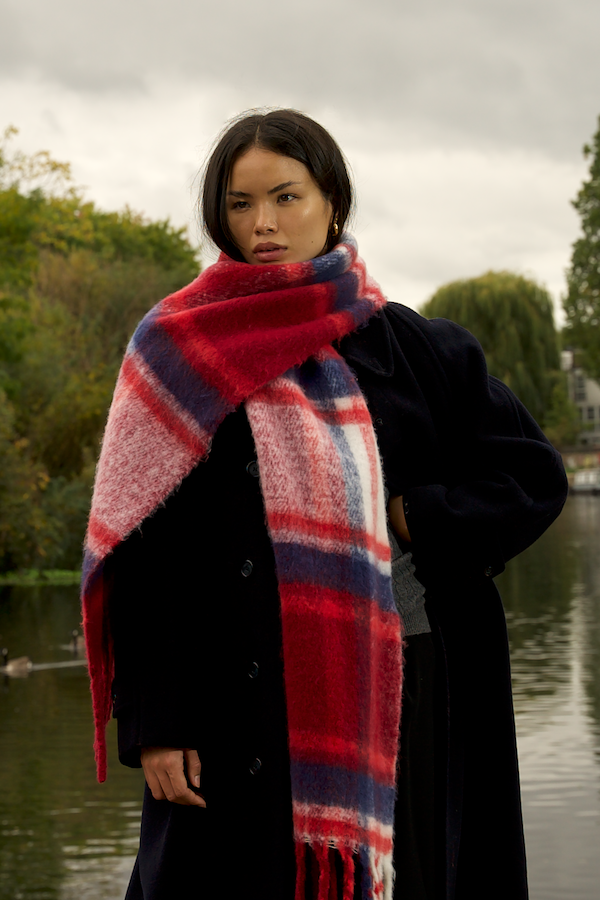 Fluffy, oversized and ultra soft, these chunky scarves are a contemporary take on a classic design. Exceptionally soft and cosy, yet crafted entirely from recycled plastic bottles that may have otherwise ended up in oceans or landfill. Comes in three colourways: Red & Navy, Grape & Green, Sky Blue & Black.