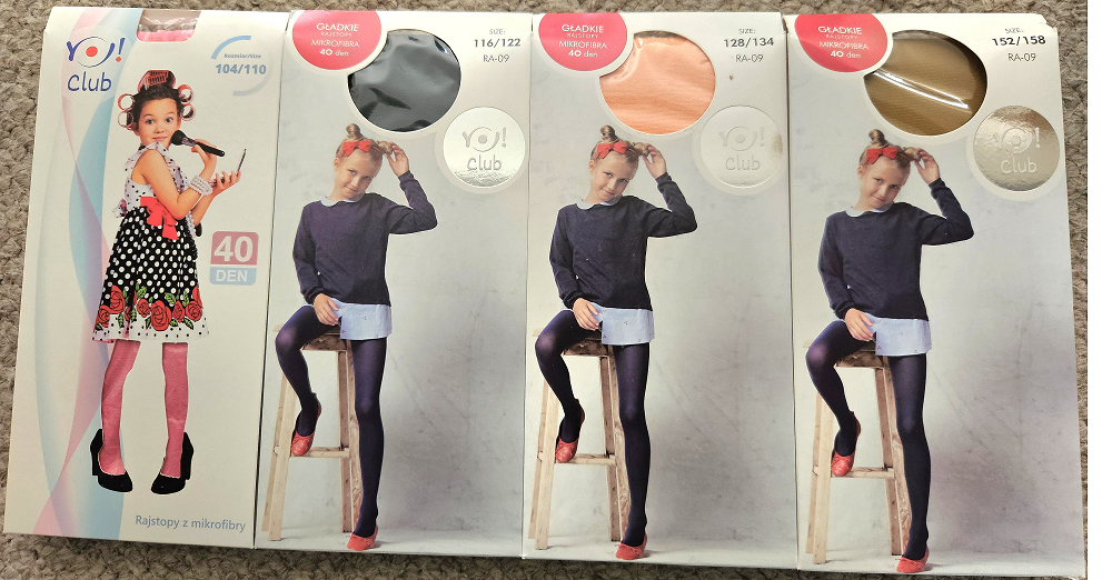 Joblot of assorted girls microfiber tights, 40 DEN, brand YO CLUB, single packs - 390pc.